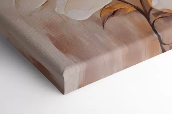 Paveikslas Baltos magnolijos žiedai švelniame, neryškiame smėlio ir rudų tonų fone, elegantiška gėlių kompozicija Nr s45571