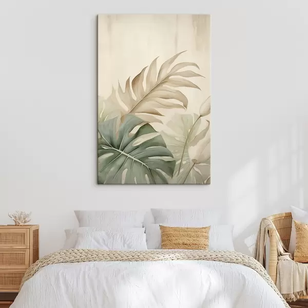 Paveikslas Atogrąžų lapai šviesiame fone Nr s45617