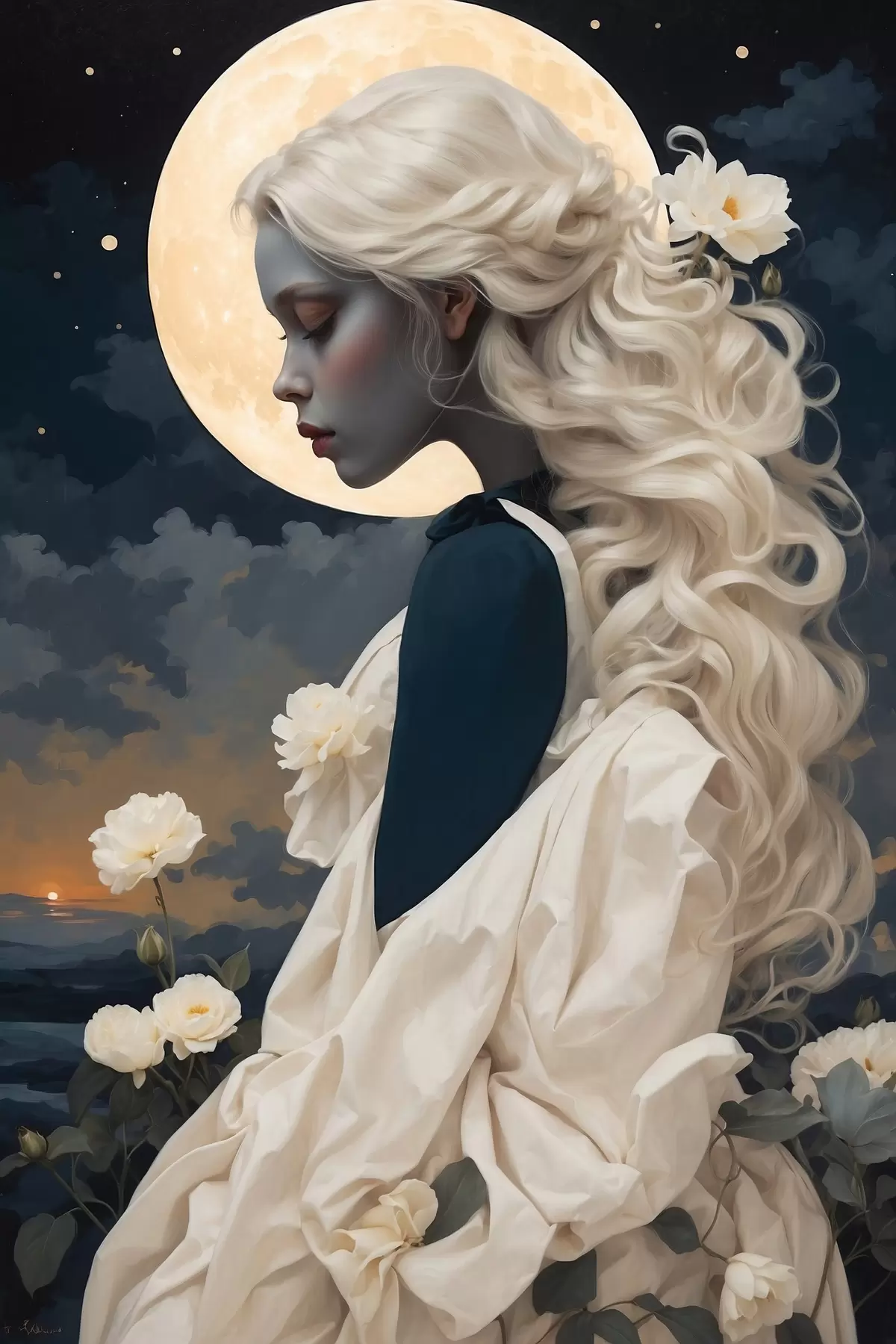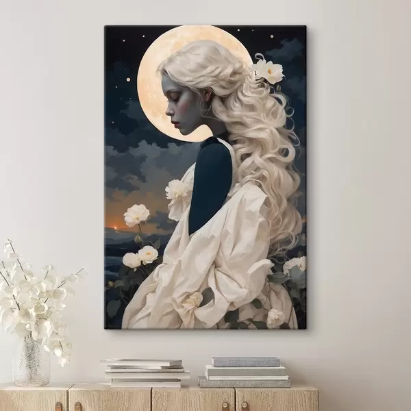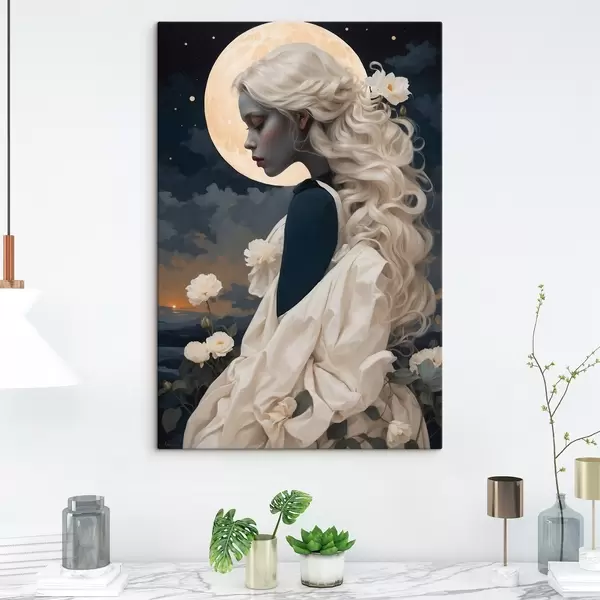 Paveikslas Moteris baltais plaukais po mėnuliu Nr s45622