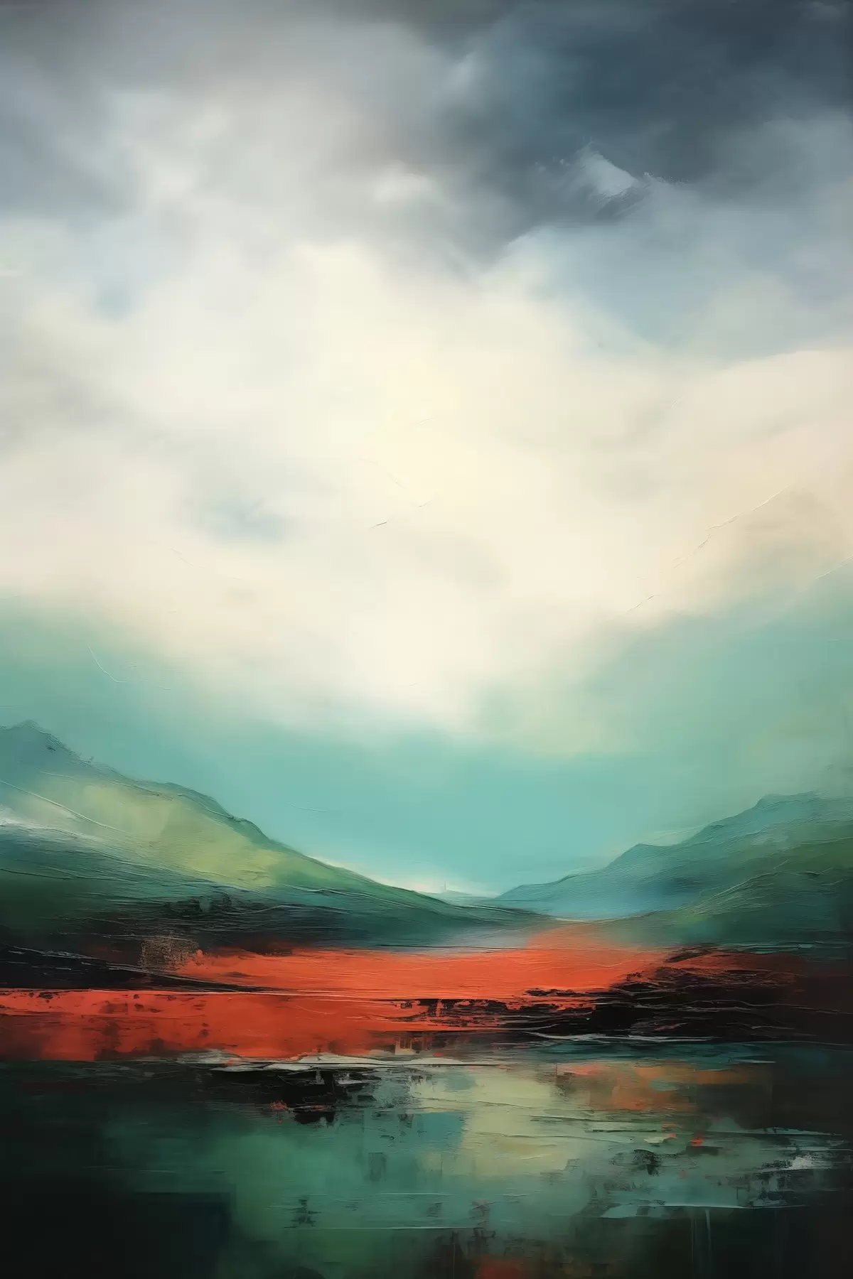 Paveikslas Šviesus kraštovaizdis su debesimis ir kalnais Nr s45626