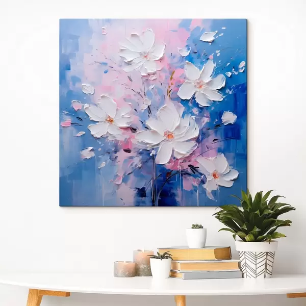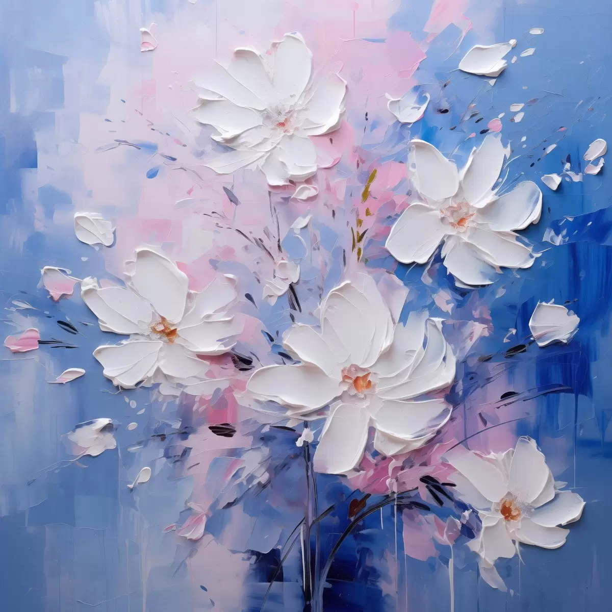Paveikslas Tūrinės gėlės mėlyname fone impasto stiliumi Nr s45648