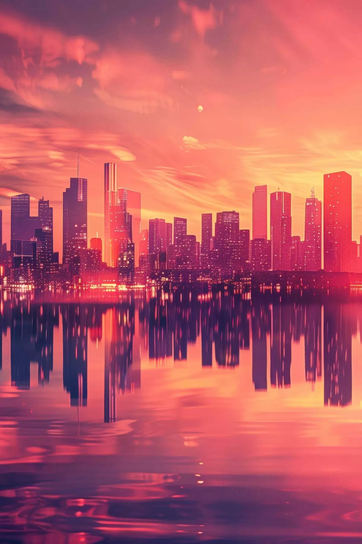 Paveikslas Miestas saulėlydžio metu Nr s45658