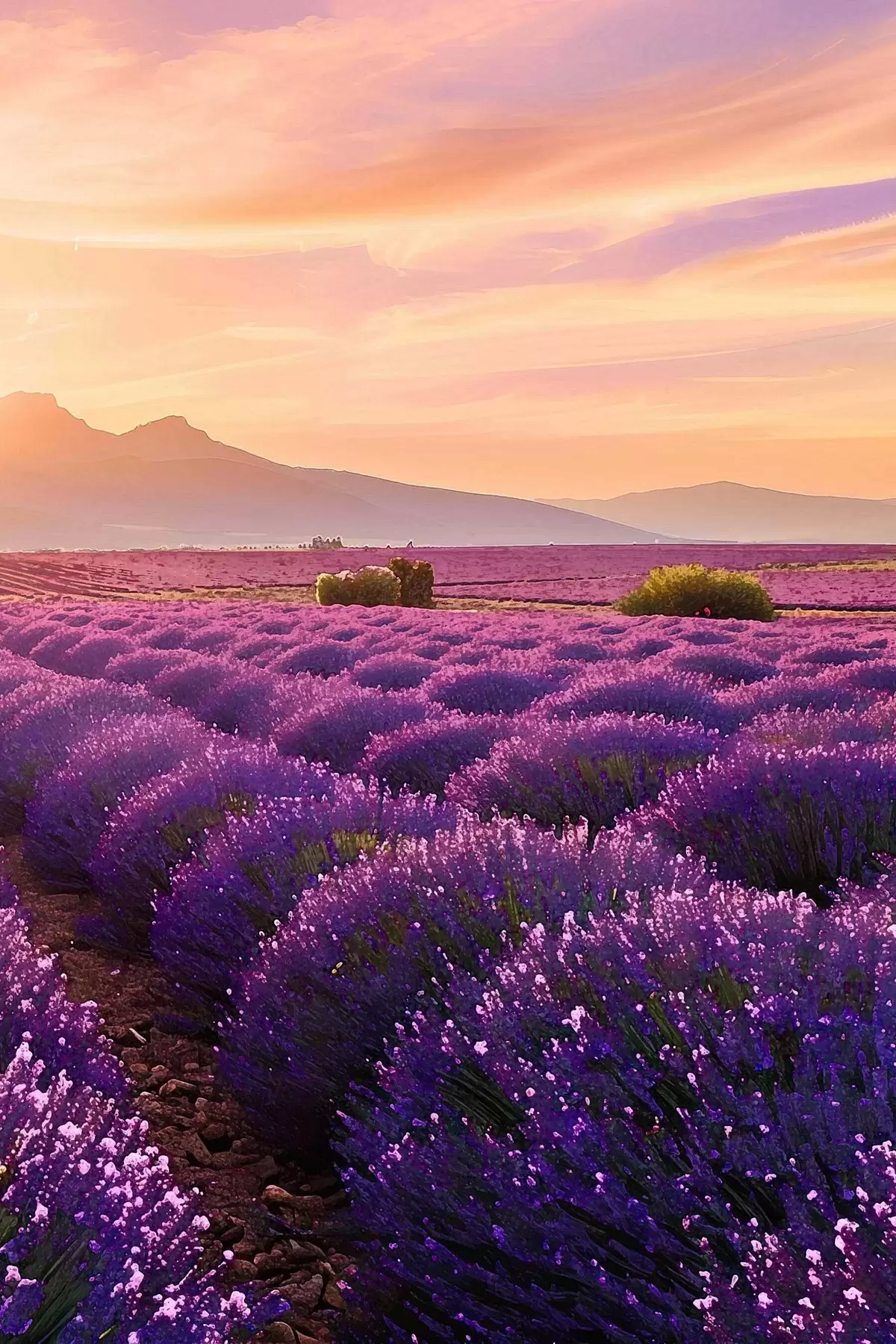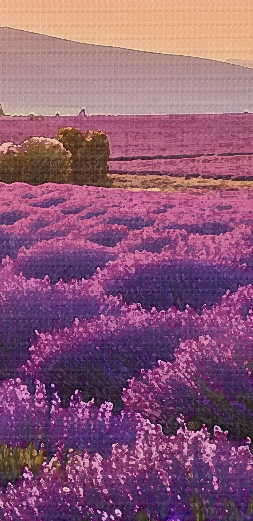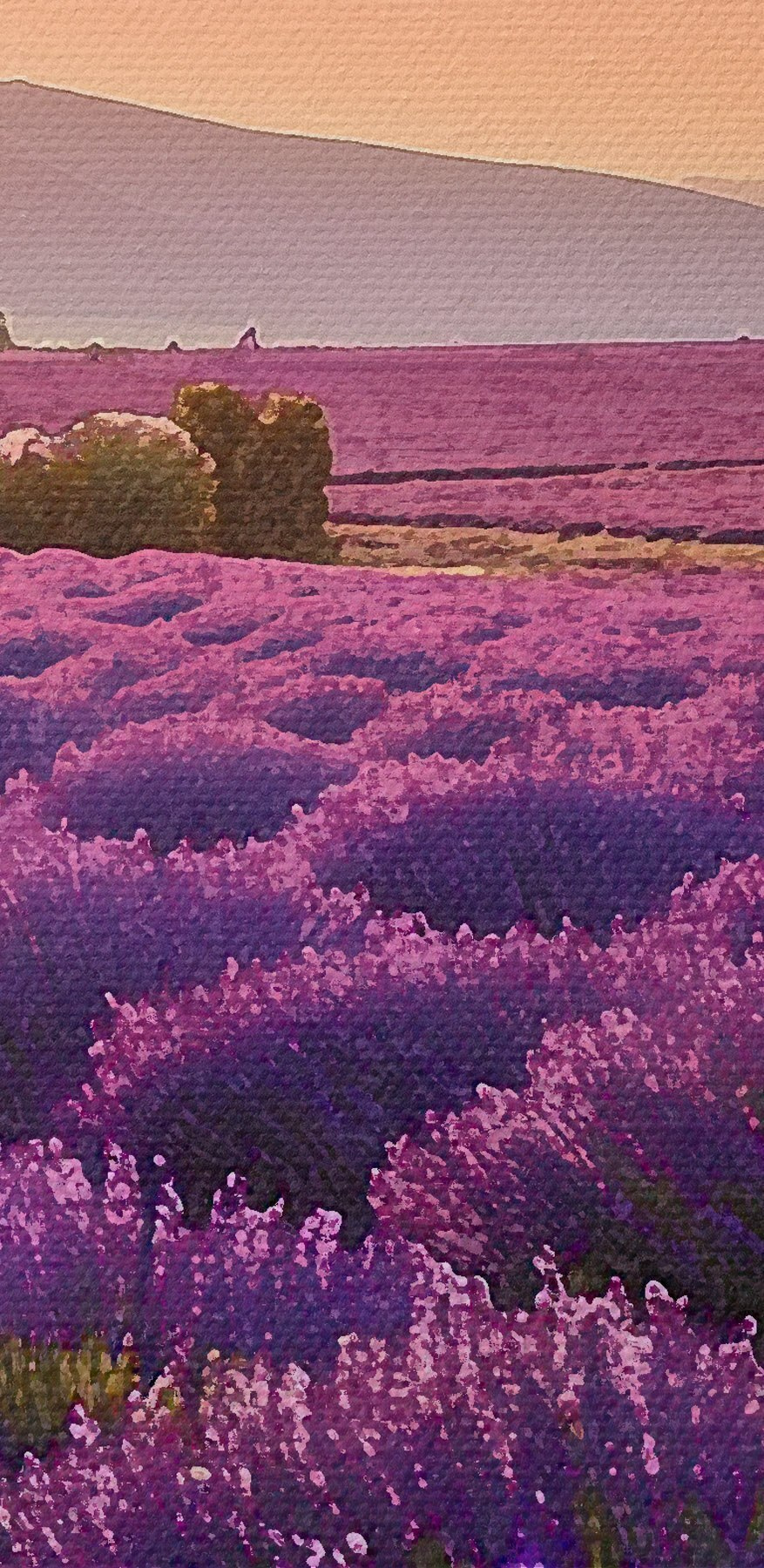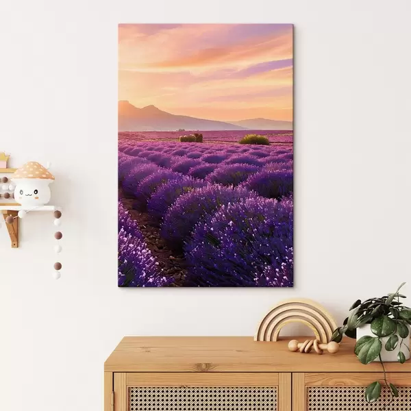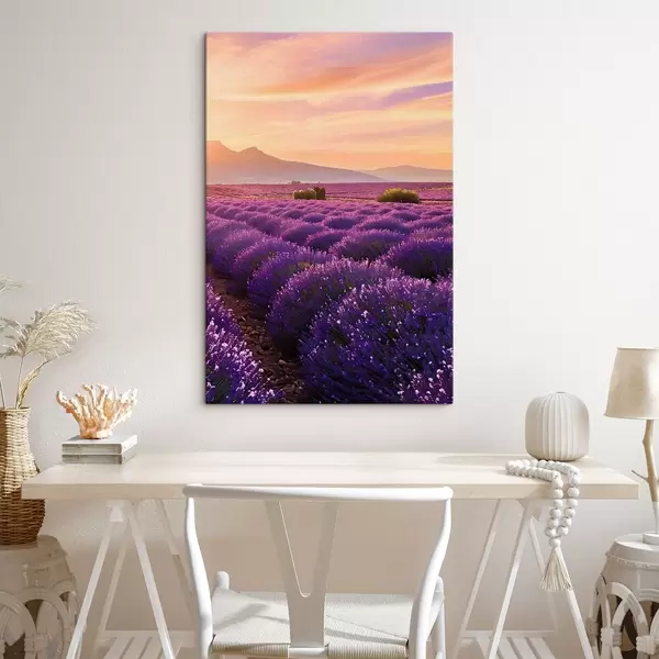 Paveikslas Levandų laukas kalnų saulėlydžio fone Nr s45664