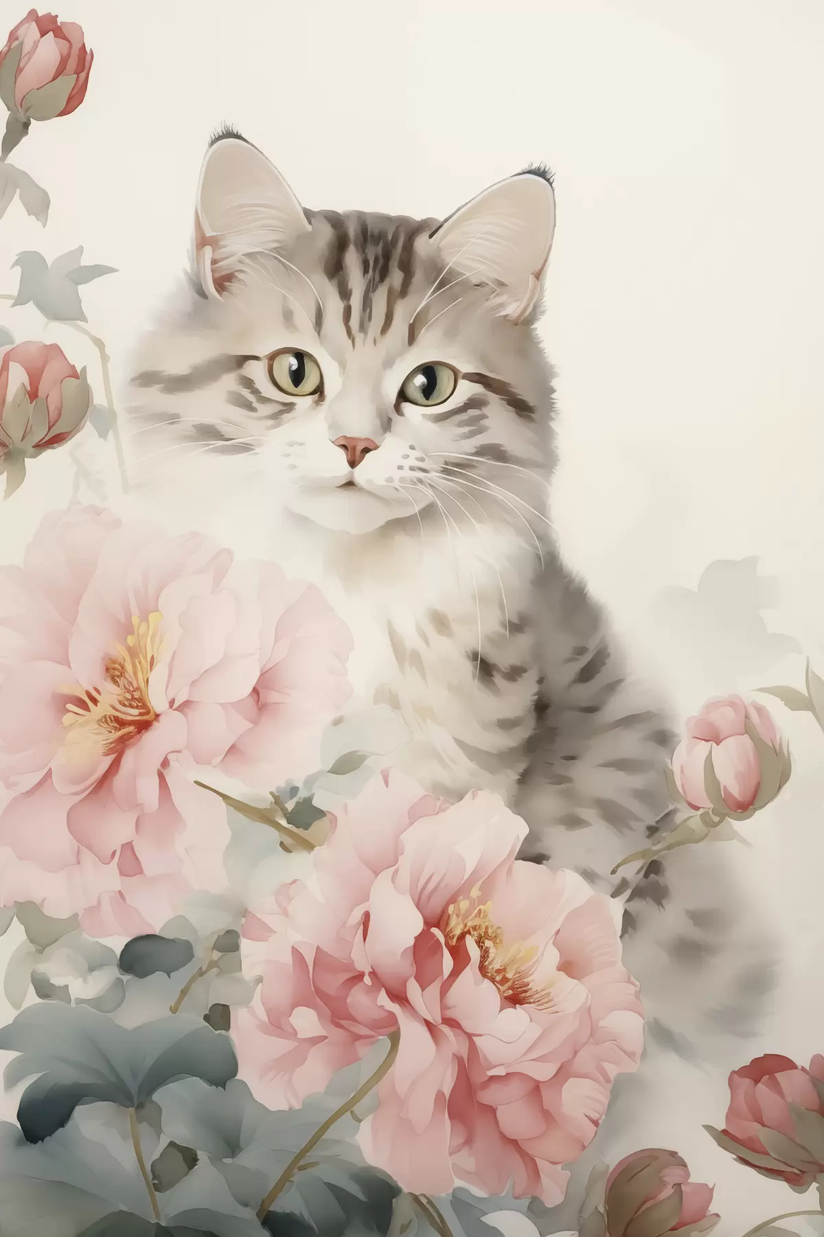 Paveikslas Katė tarp gėlių Nr s45674