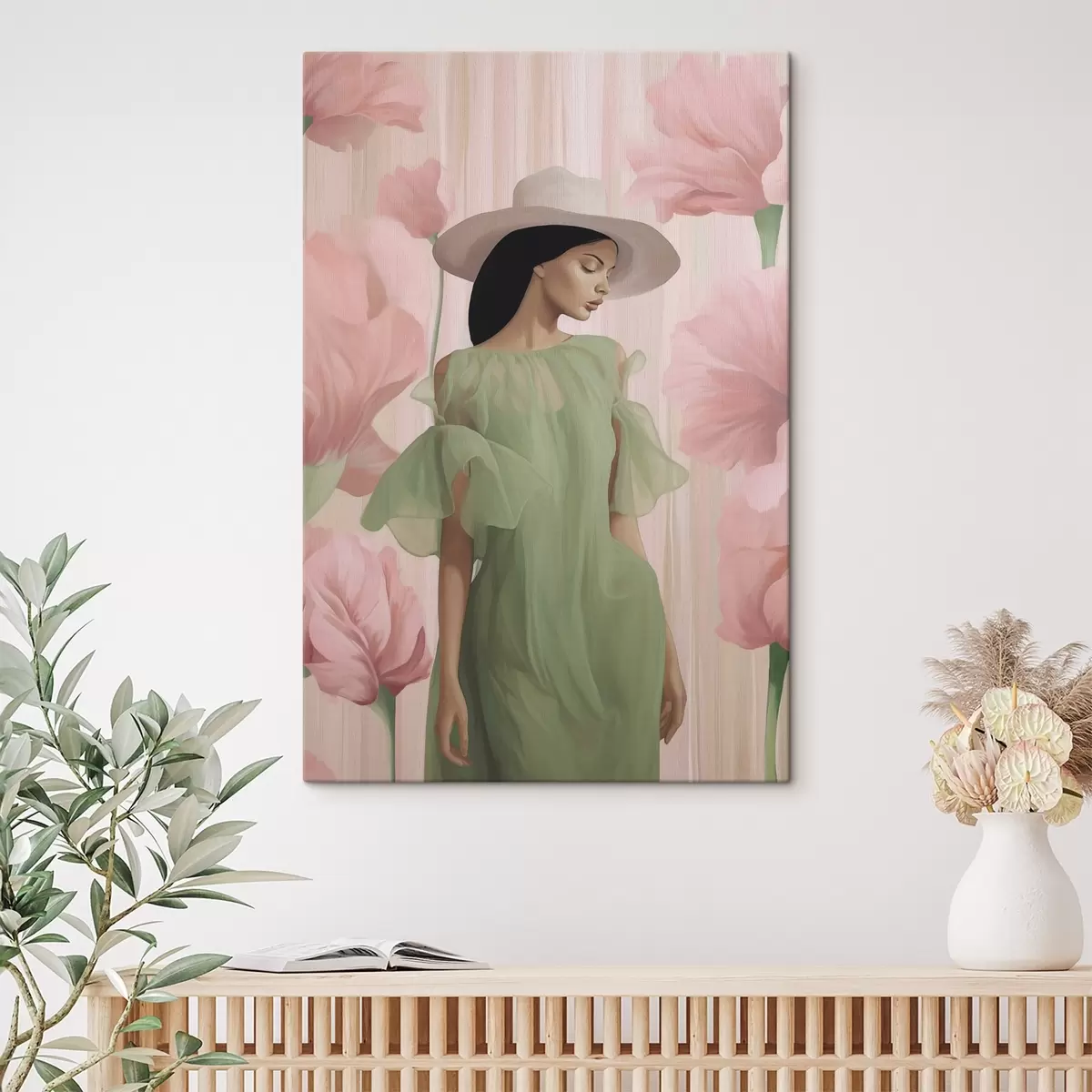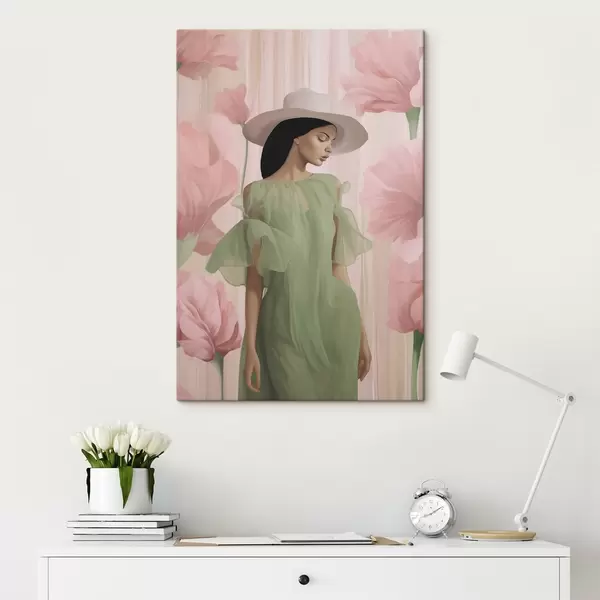 Paveikslas Mergaitė su skrybėle tarp gėlių Nr s45678