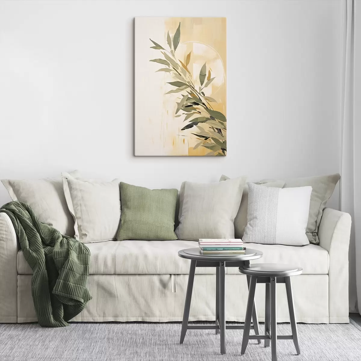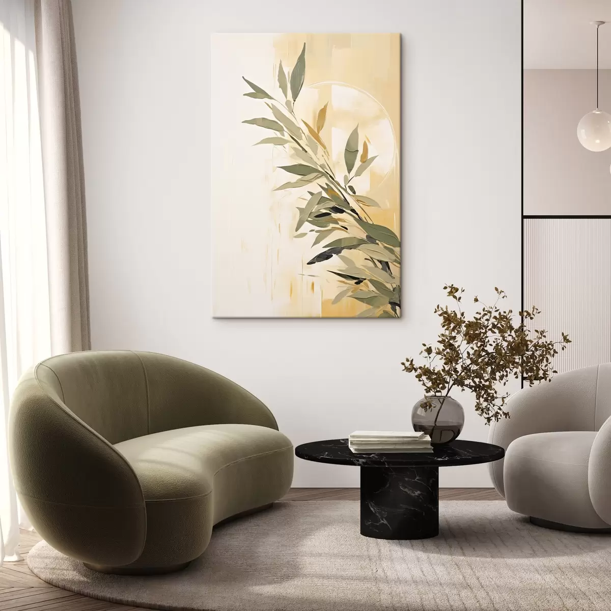 Paveikslas Botanikos šaka su žaliais lapais šiltame fone Nr s45690