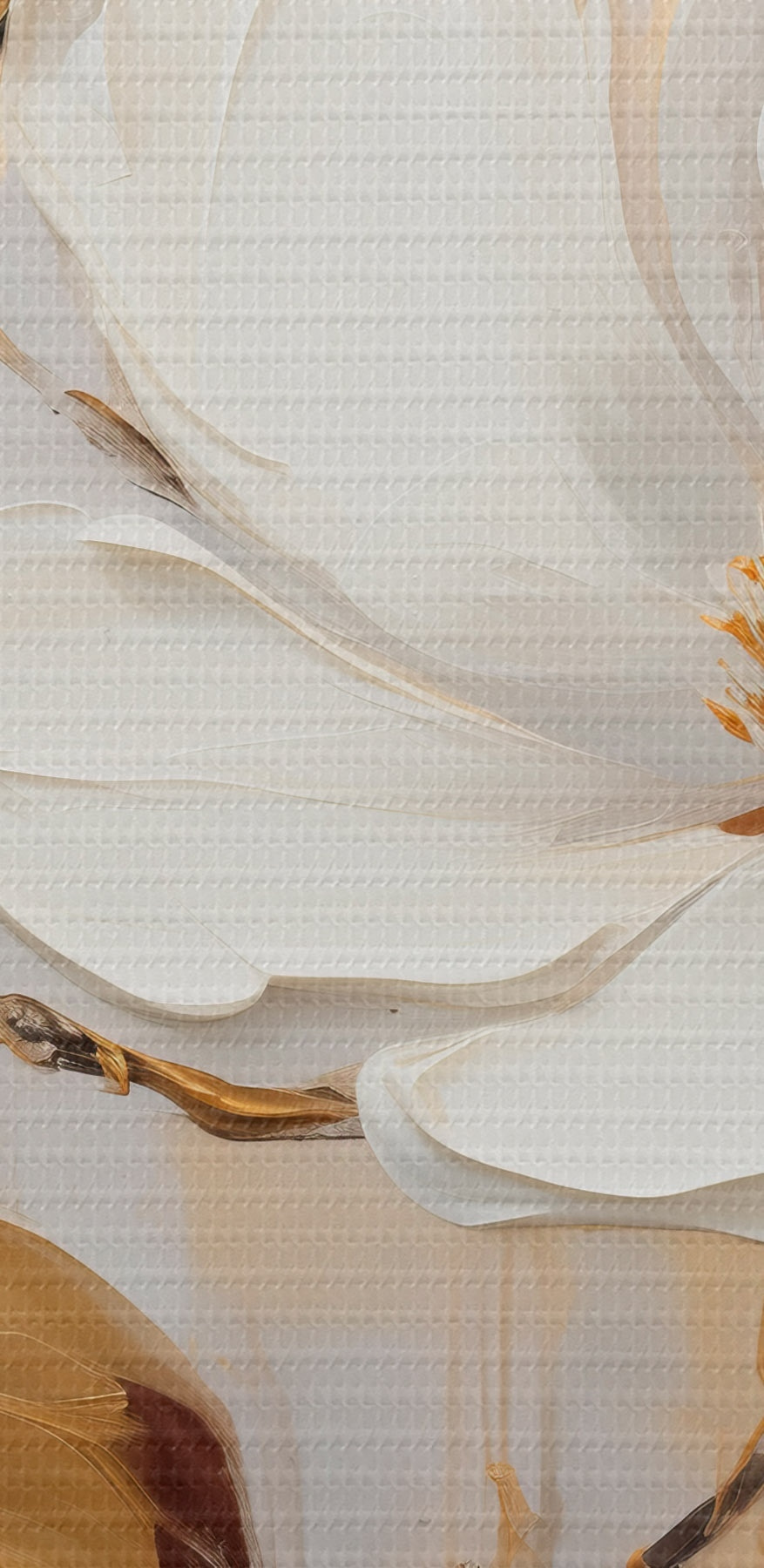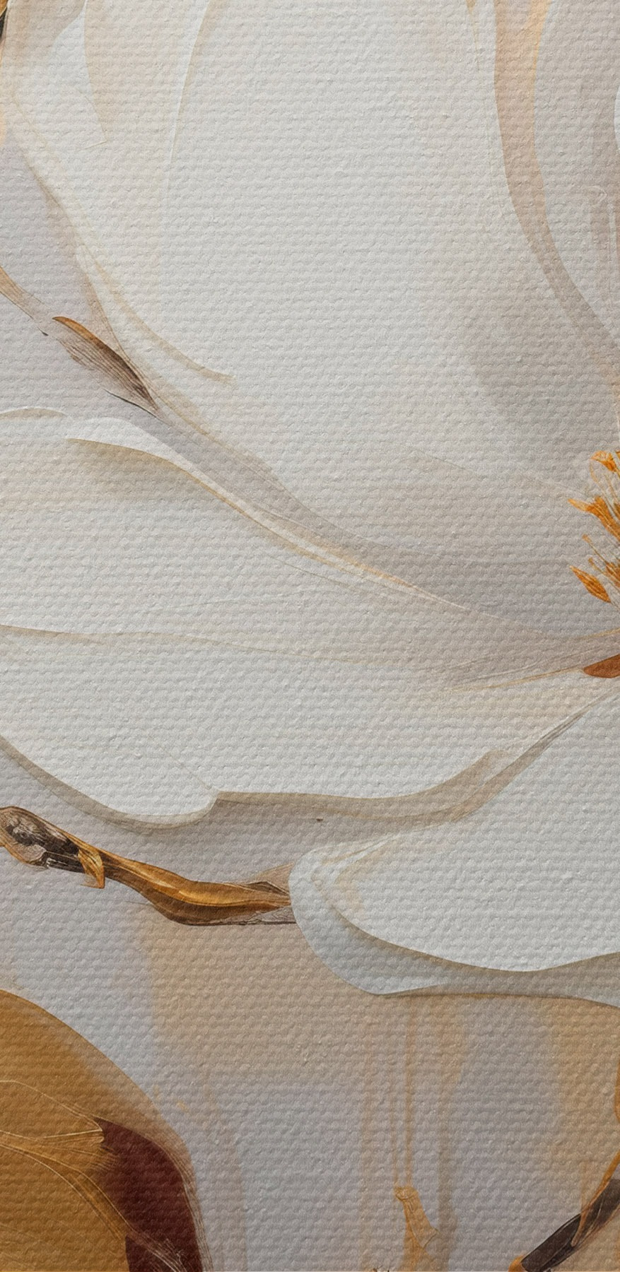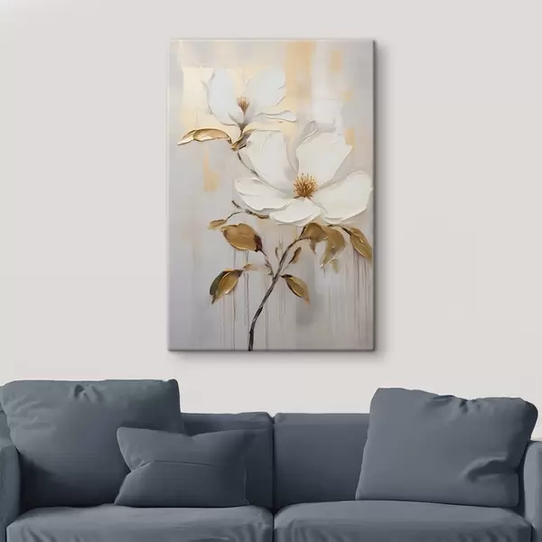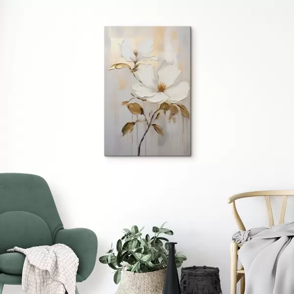 Paveikslas Dvi baltos gėlės su geltonai oranžiniais lapais šviesiame fone Nr s45691