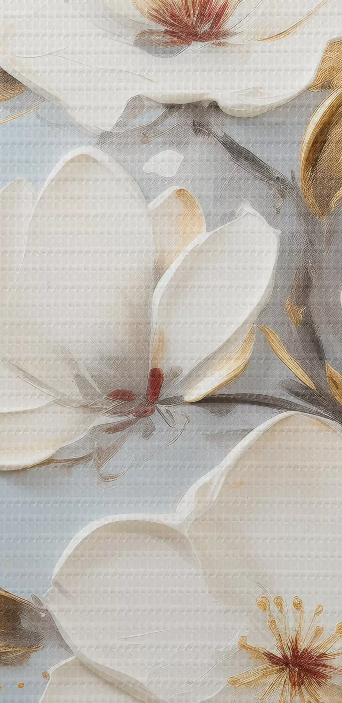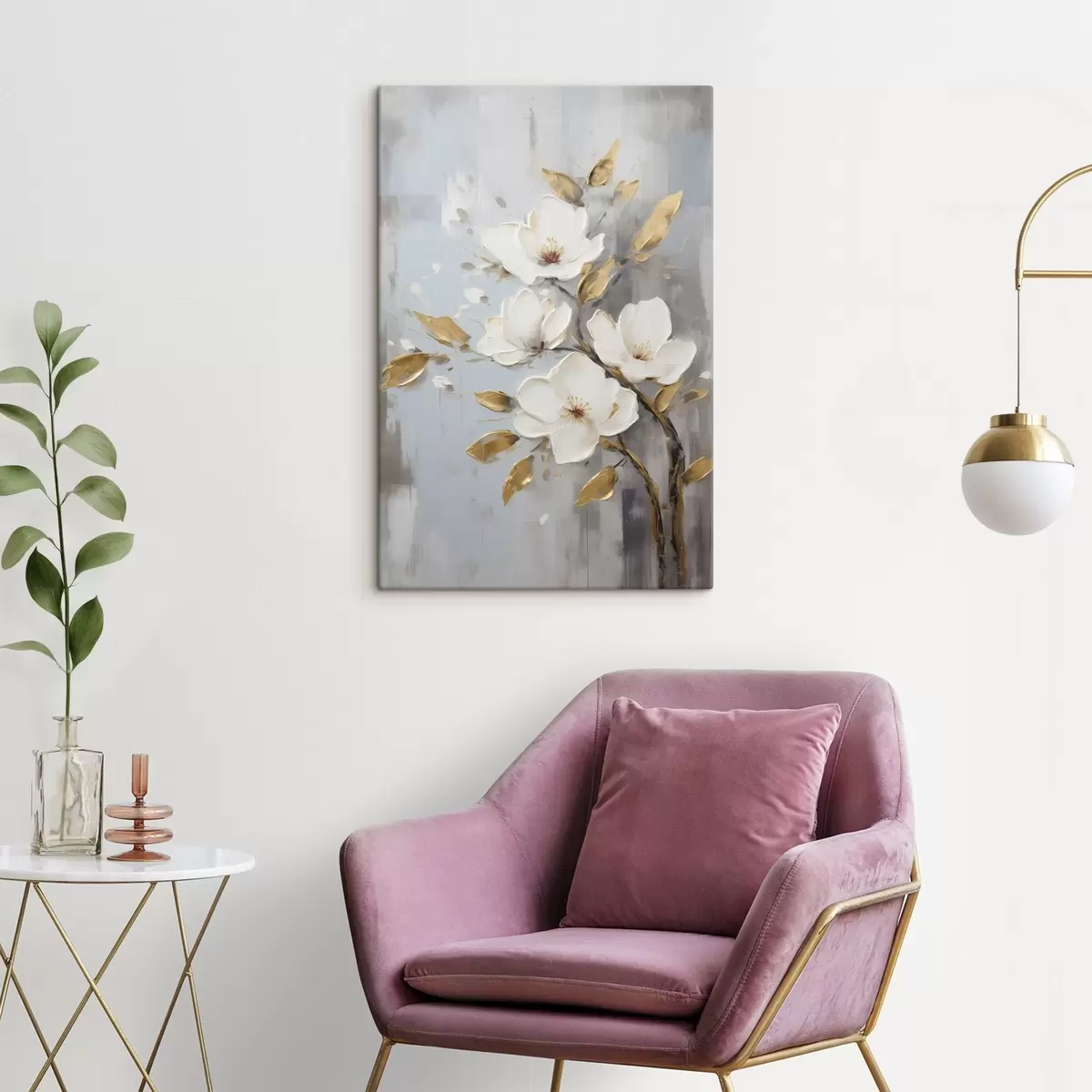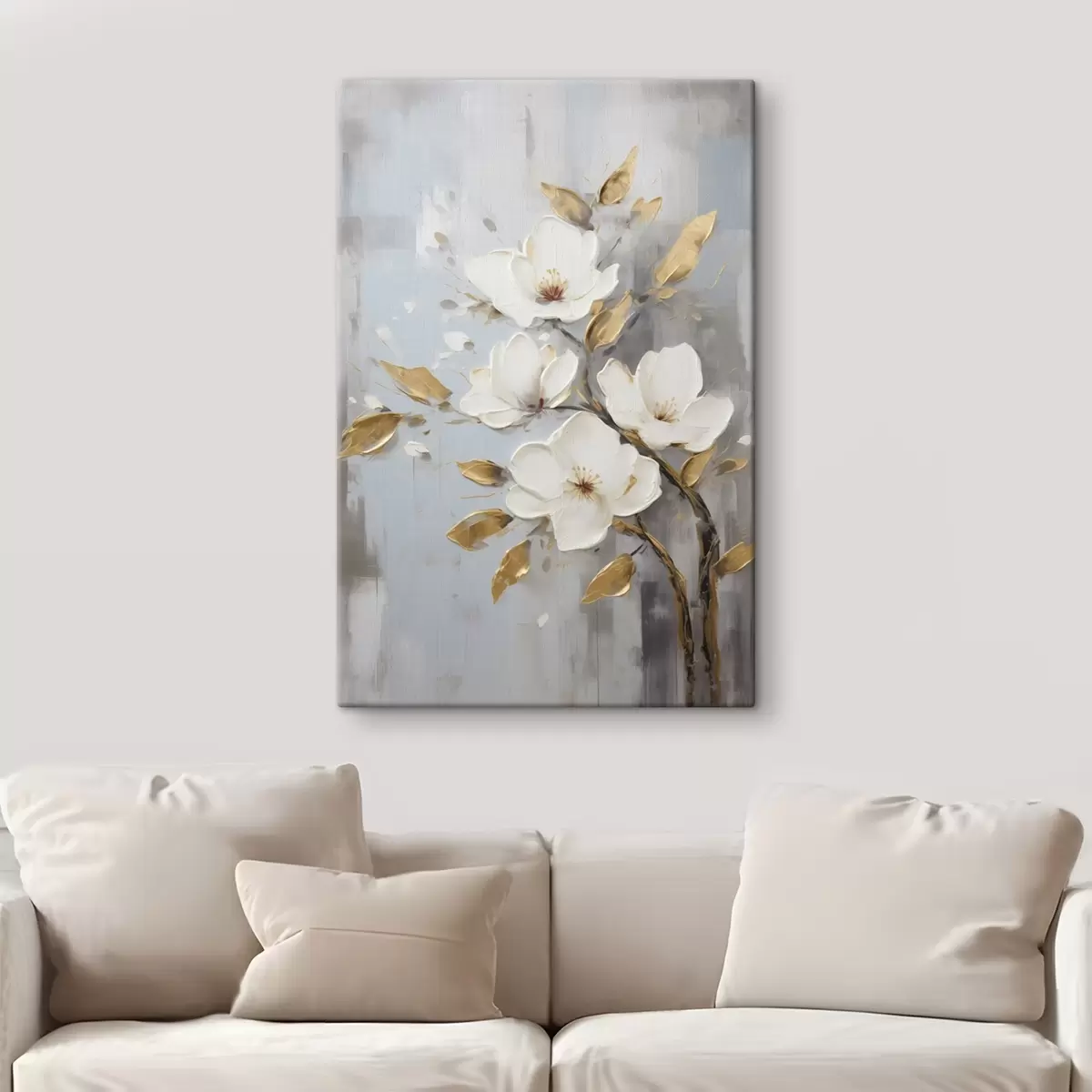 Paveikslas Šaka su baltais žiedais ir geltonai oranžiniais lapais Nr s45692