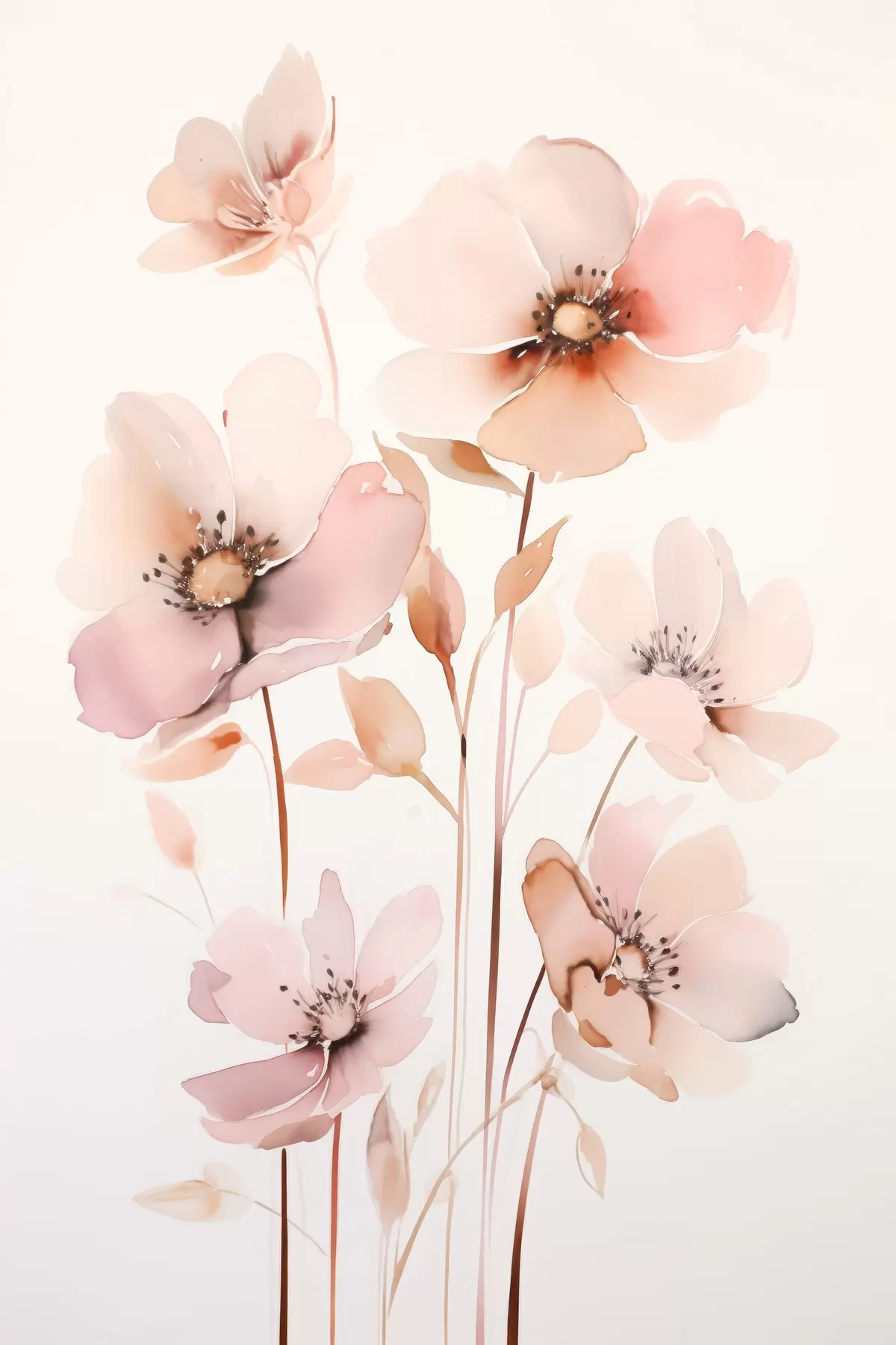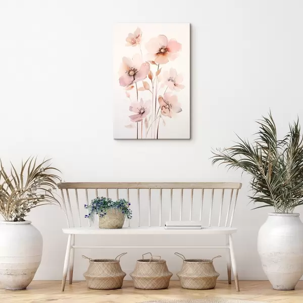 Paveikslas Akvarelinės rožinės gėlės ant plonų stiebų Nr s45701