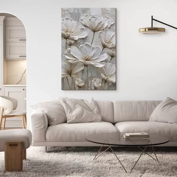 Paveikslas kreminės gėlės su imituotu impasto stiliumi Nr s45713