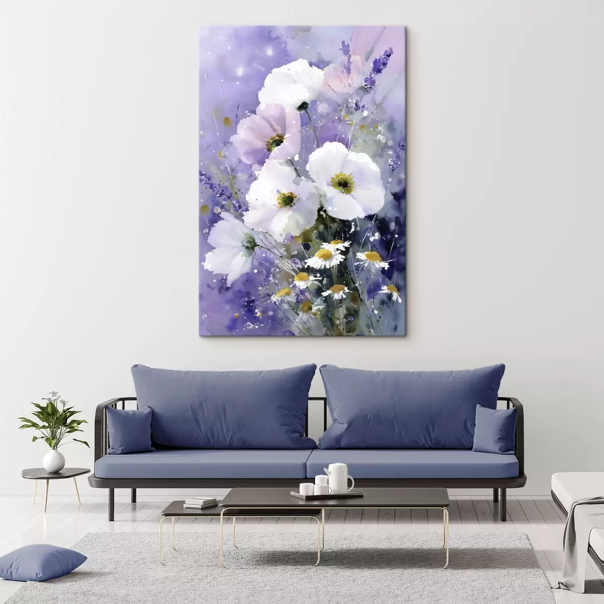 Paveikslas akvarelinis puokštė alyvinės ir baltos spalvos tonais Nr s45719