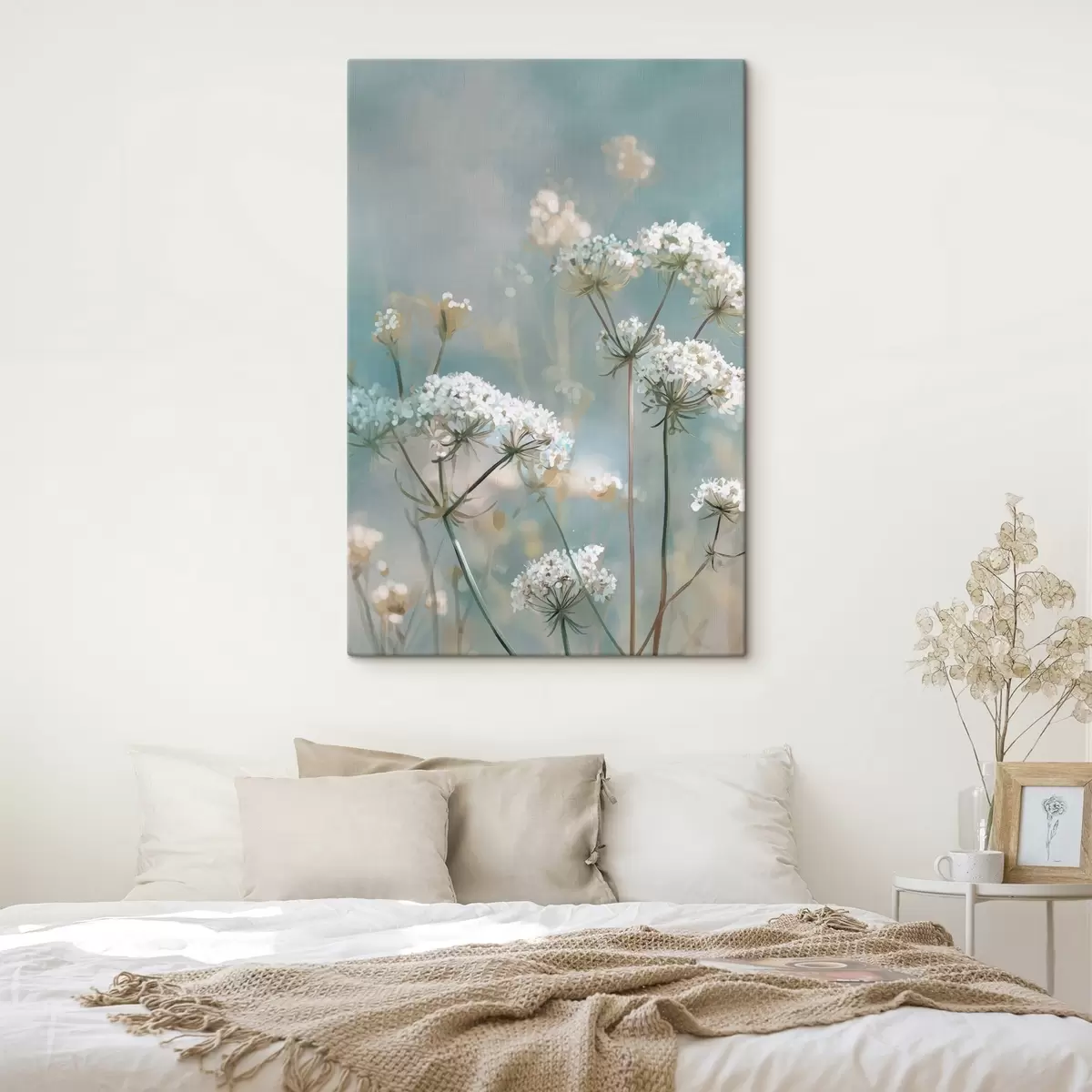 Paveikslas Mėlyname fone akvarelės stiliaus karalienės Anos nėrinių gėlės Nr s45721