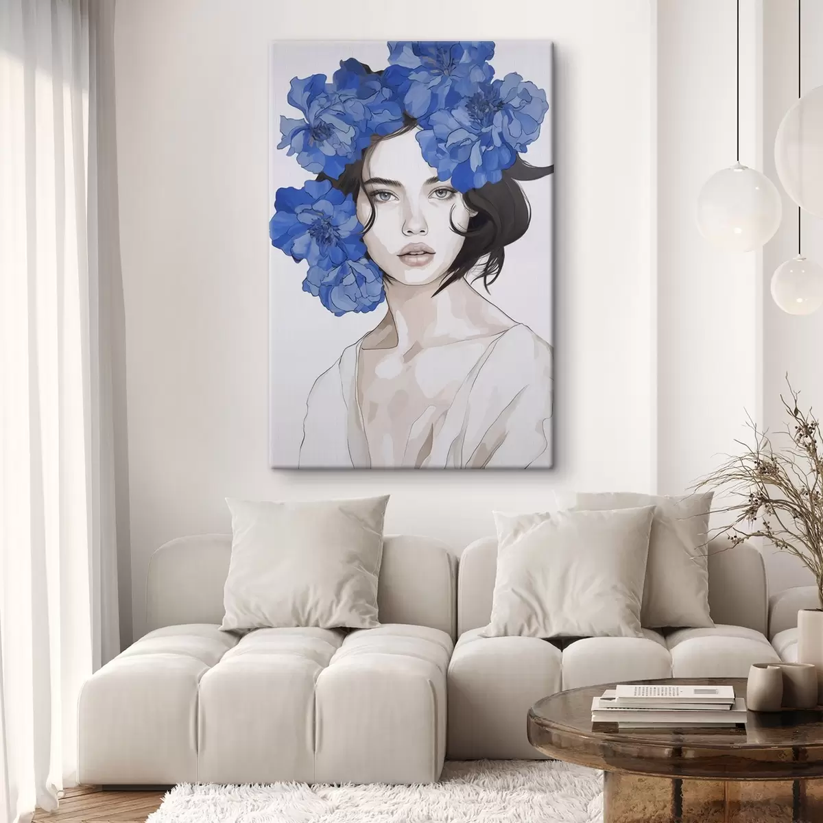 Paveikslas Merginos su mėlynomis gėlėmis portretas Nr s45756