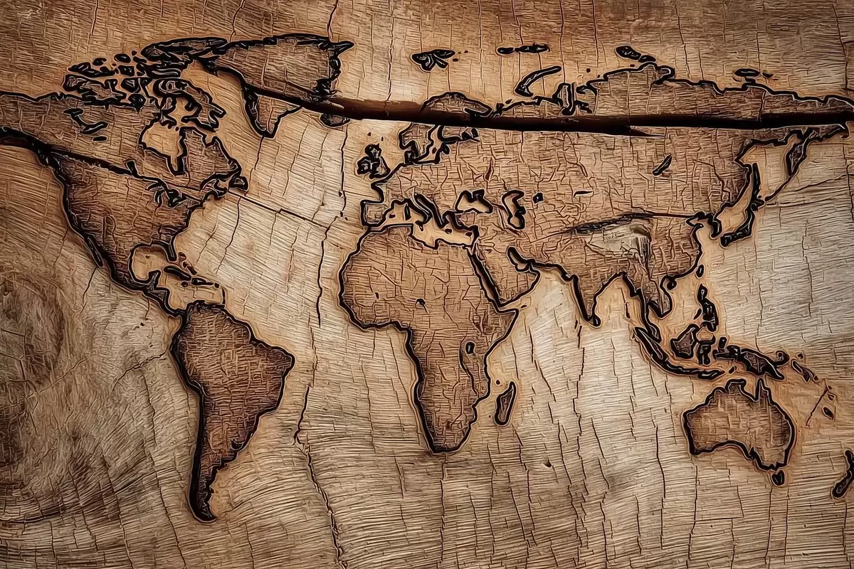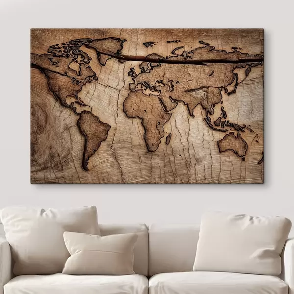 Paveikslas Graviruotas medinis pasaulio žemėlapis Nr s45805