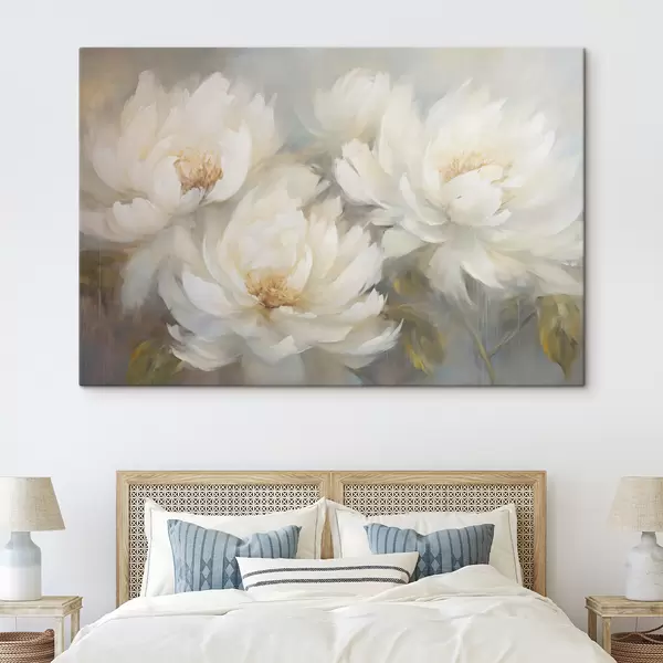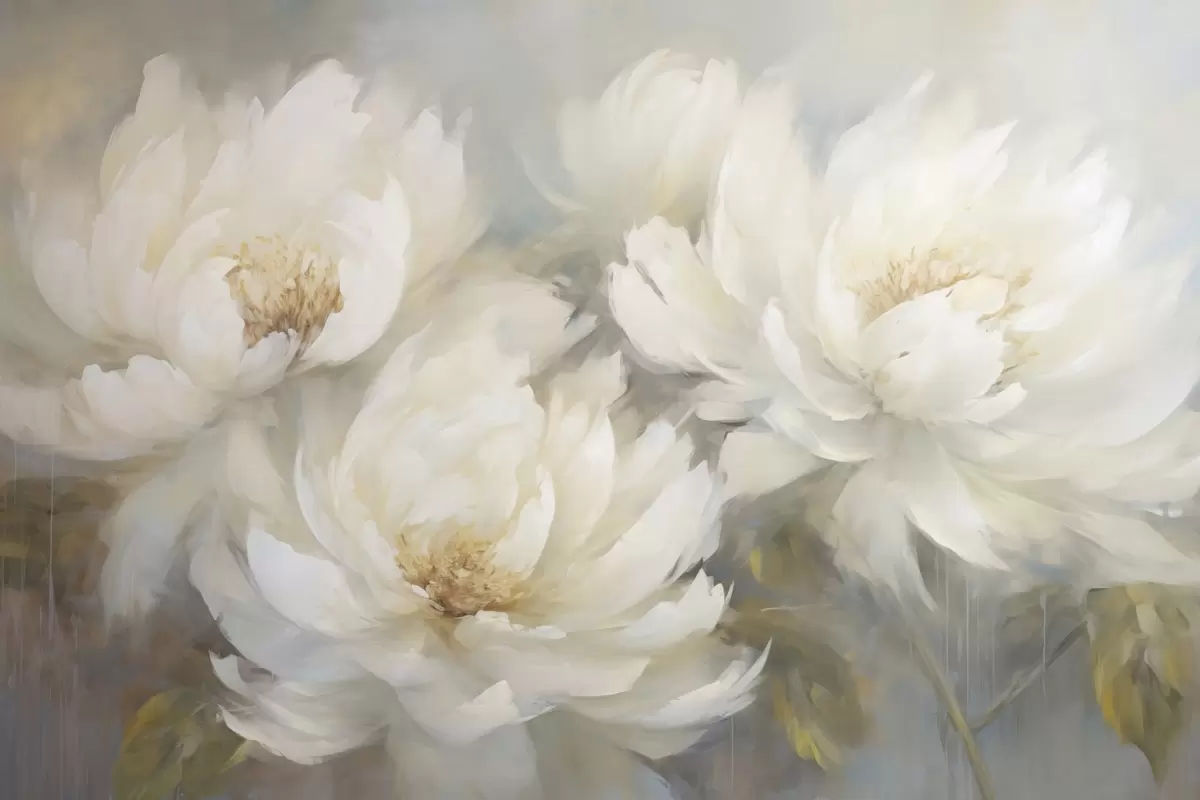Paveikslas Trys sodrios baltos bijūnės ant subtilaus fono Nr s45808