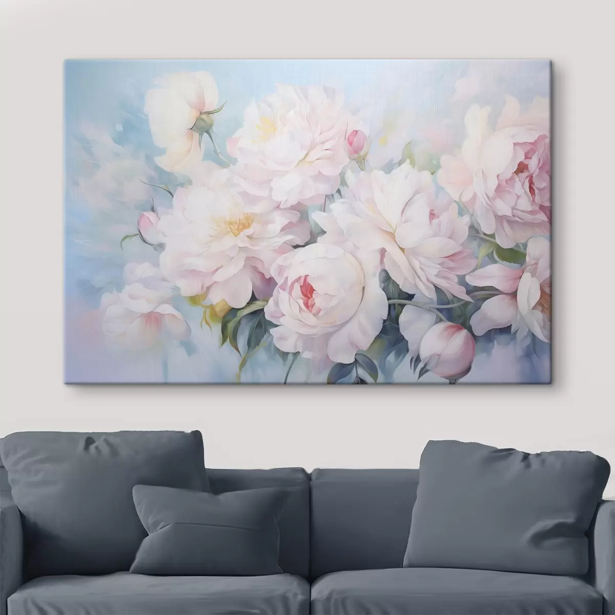 Paveikslas Subtilūs rožiniai bijūnai ant žydro dangaus fono Nr s45813