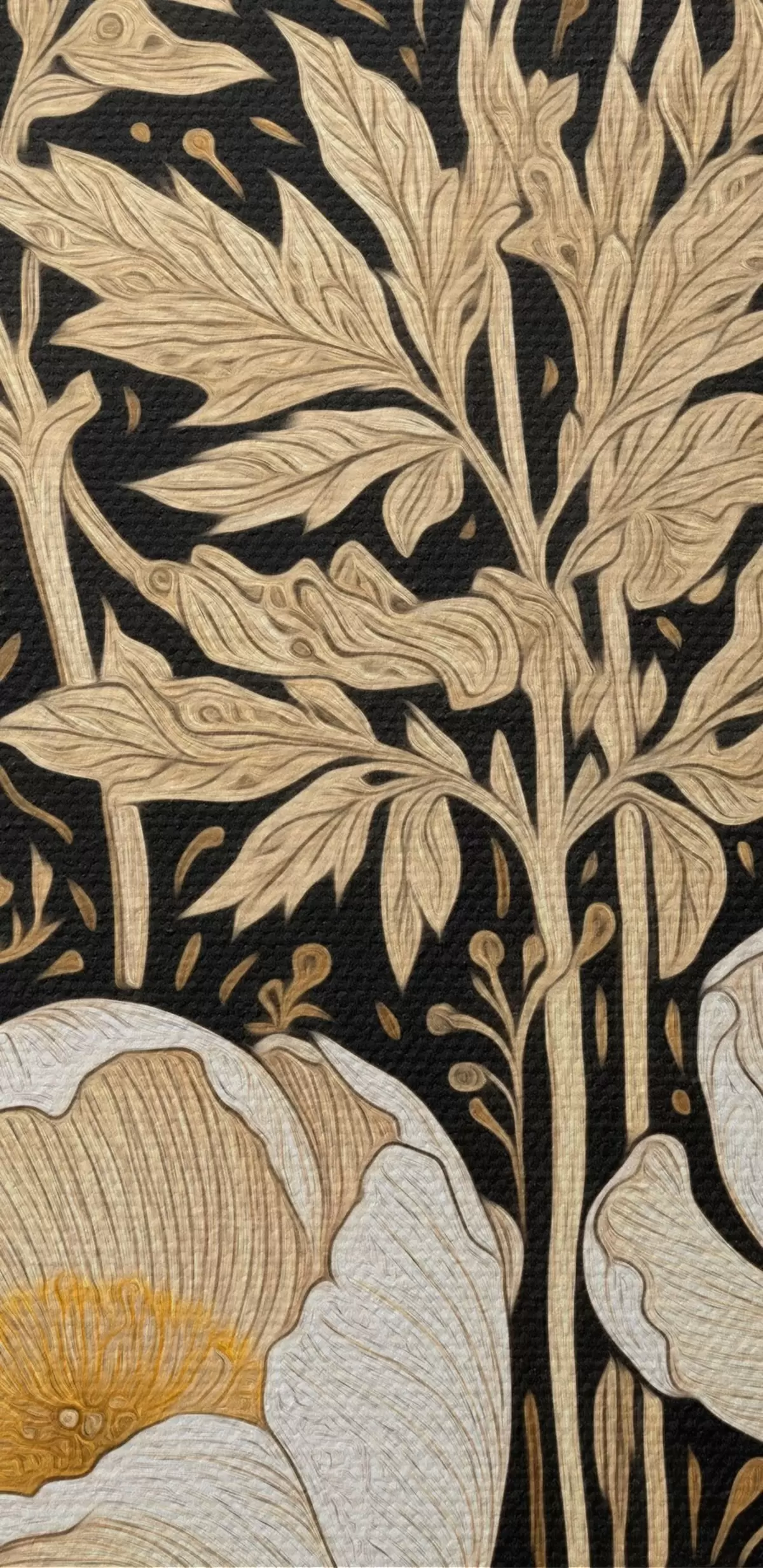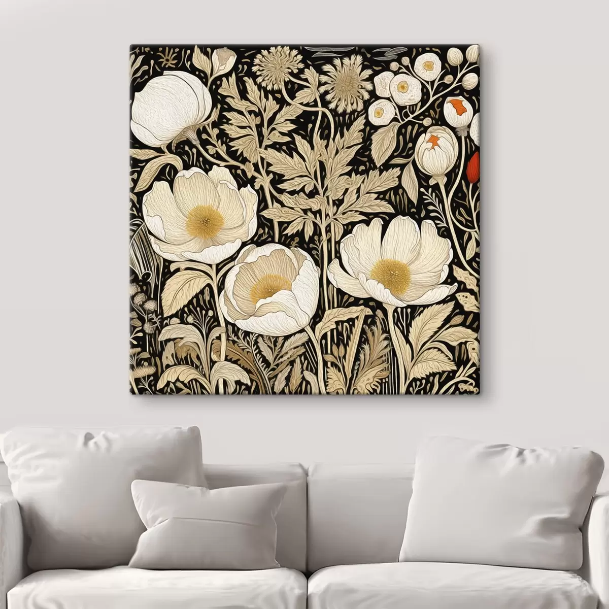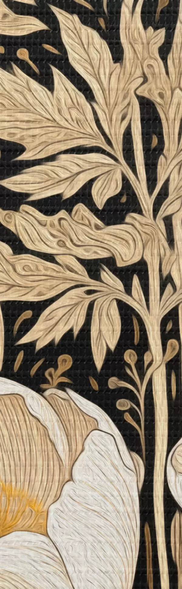 Paveikslas Kreminės gėlės ir žolės ant juodo fono Nr s45816
