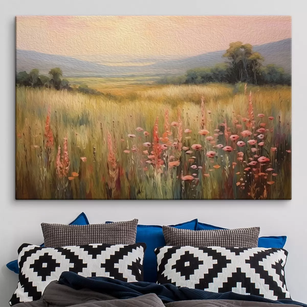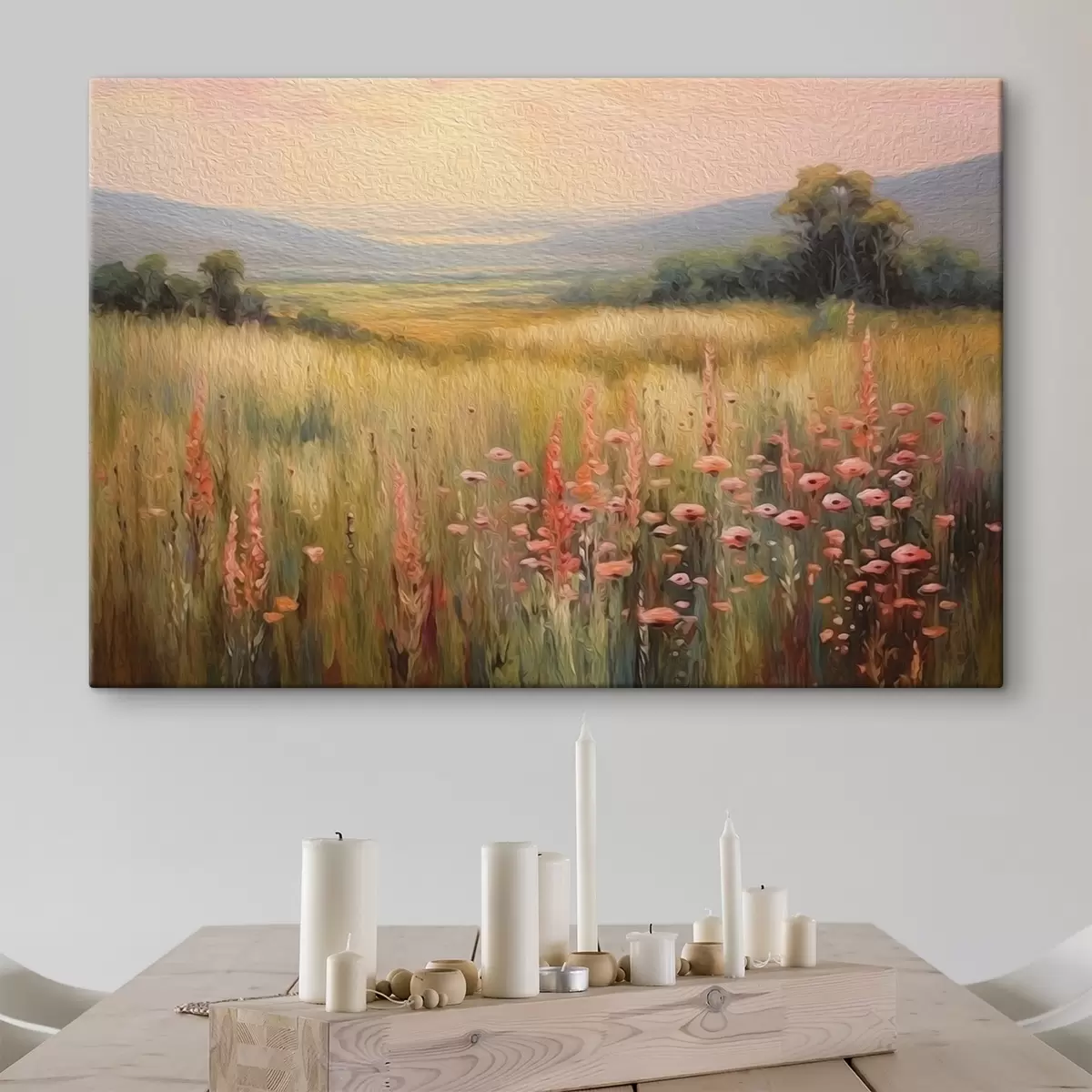 Paveikslas Lauko peizažas su gėlėmis saulėlydžio metu Nr s45818