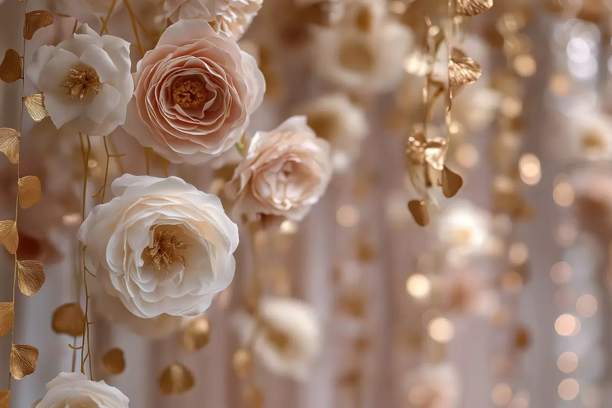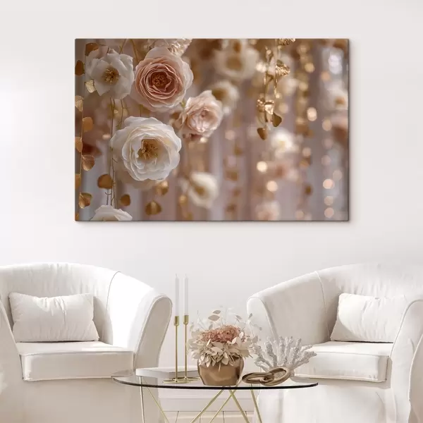 Paveikslas Kreminės rožės su auksiniais akcentais Nr s45824