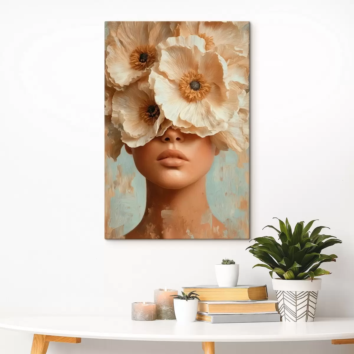 Paveikslas Portretas su smėlio spalvos gėlėmis, dengiančiomis akis Nr s45870
