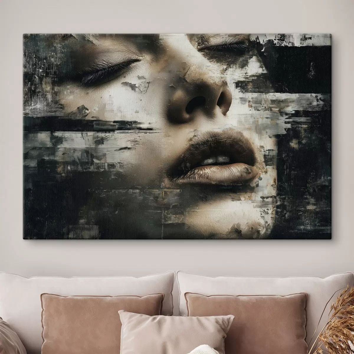 Paveikslas Abstraktus moters portretas su glitch efektu ir tekstūromis Nr s45873