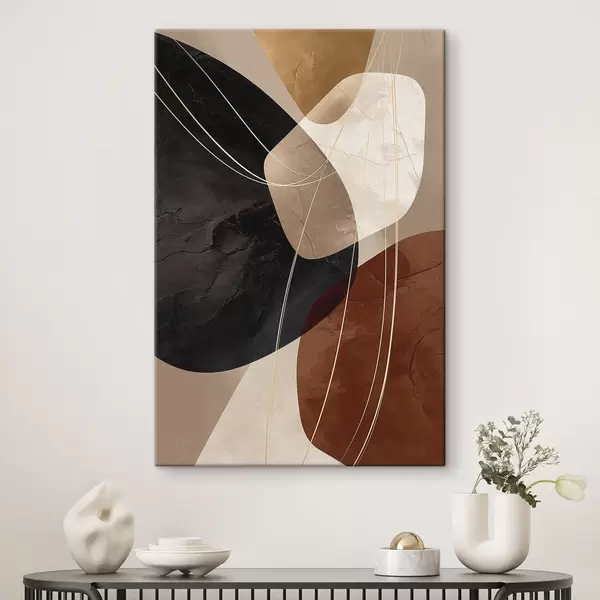 Paveikslas Geometrinės formos šiltų spalvų paletėje, plonos linijos Nr s45879