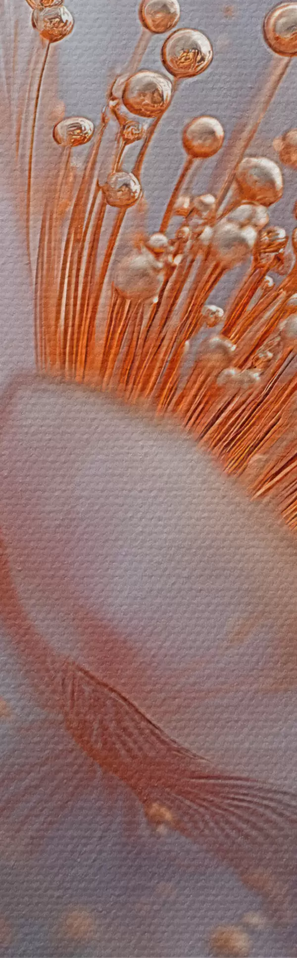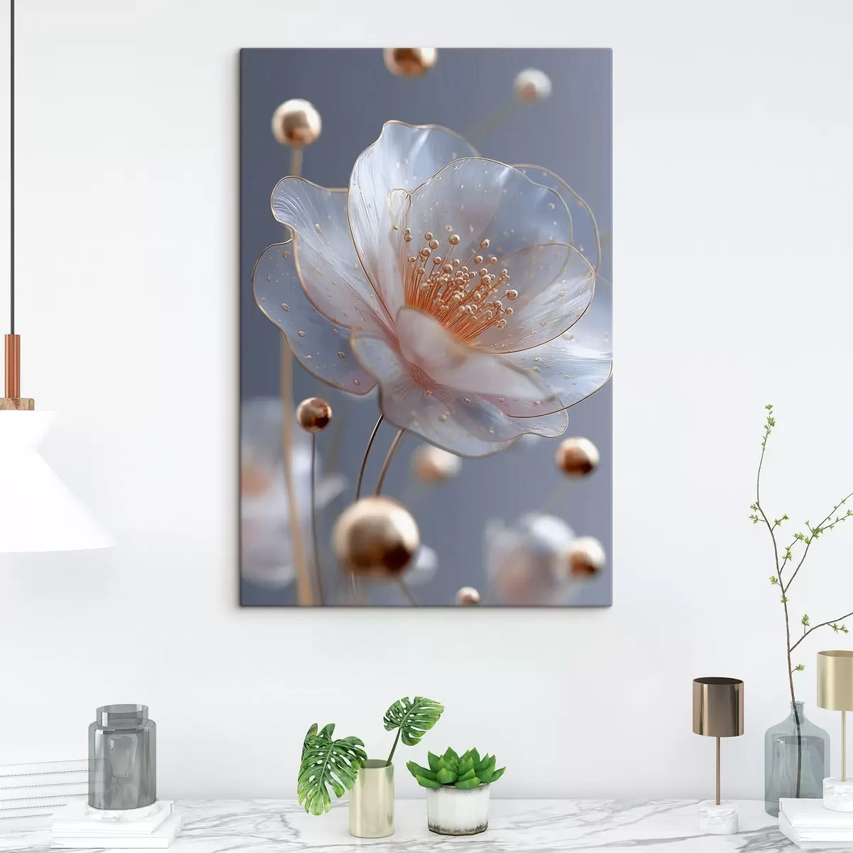 Paveikslas Permatoma gėlė su variniais kuokeliais ant mėlyno fono Nr s45880