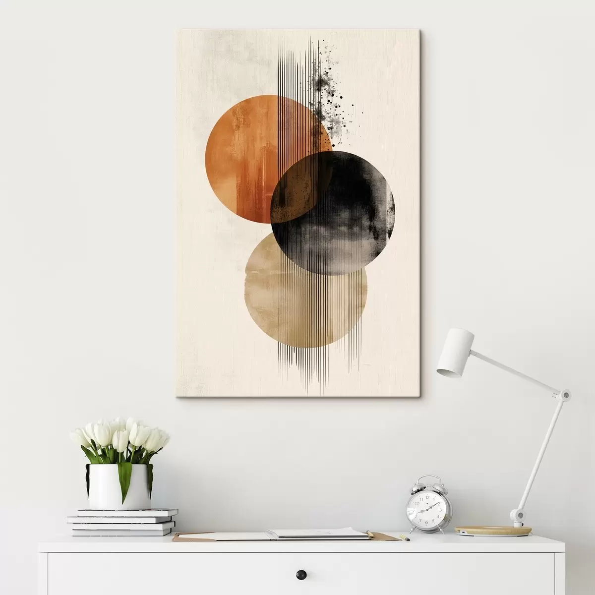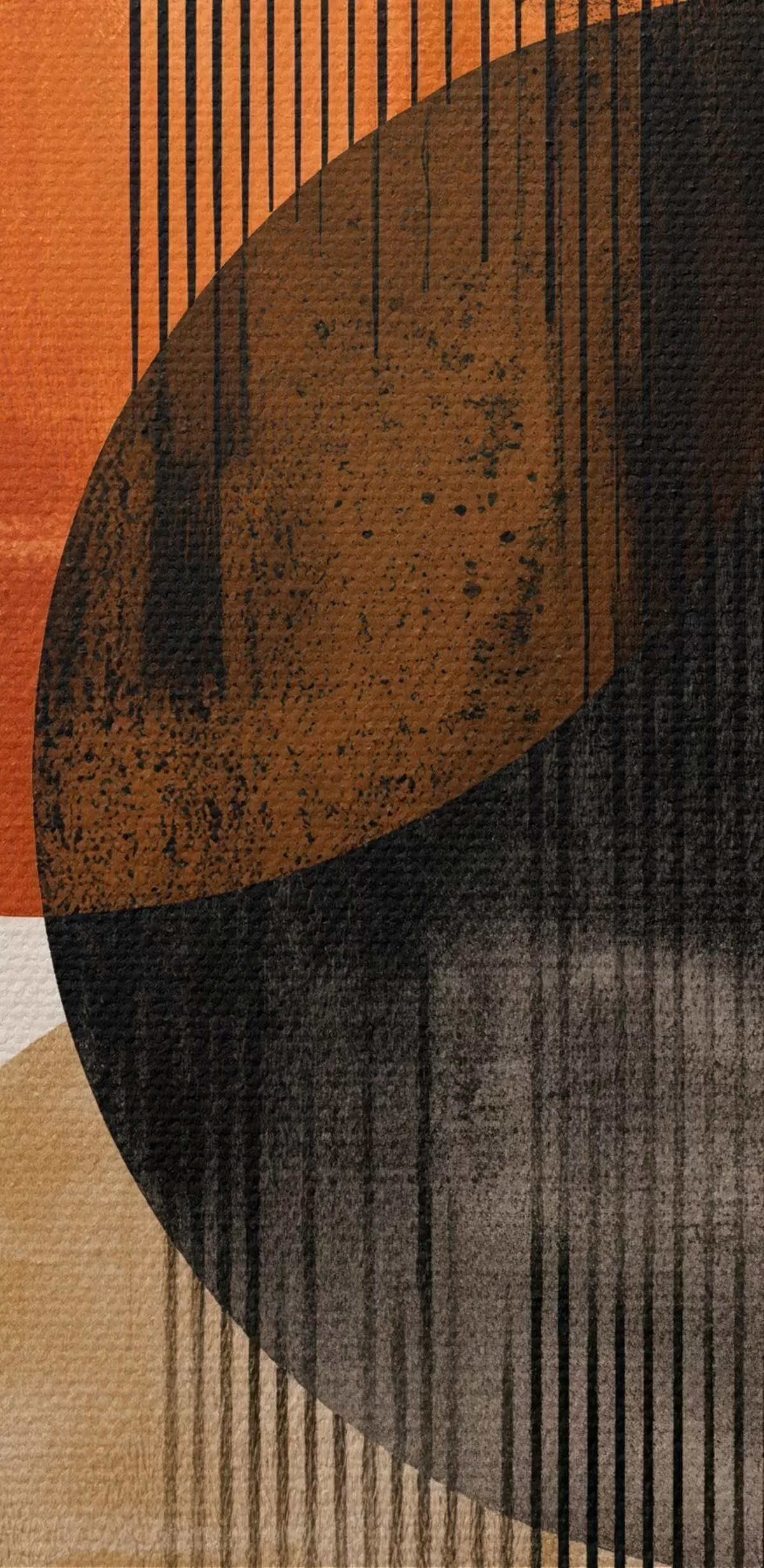 Paveikslas Trys tekstūruoti apskritimai su linijomis terakotos ir juodos spalvų paletėje Nr s45885
