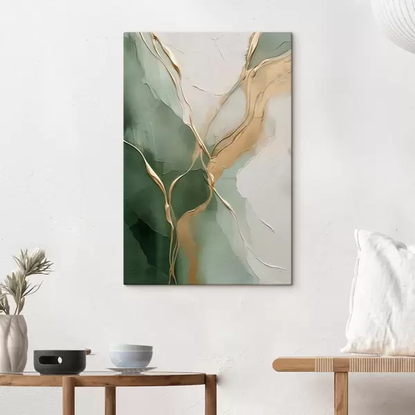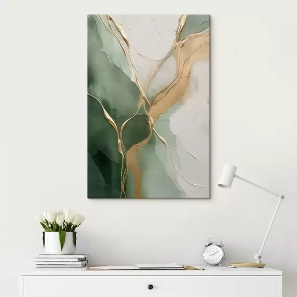 Paveikslas Smaragdo-kreminė abstrakcija su geltonomis upeliais Nr s45887