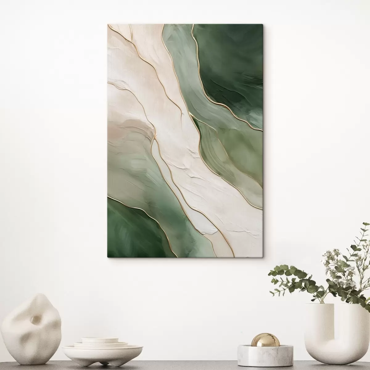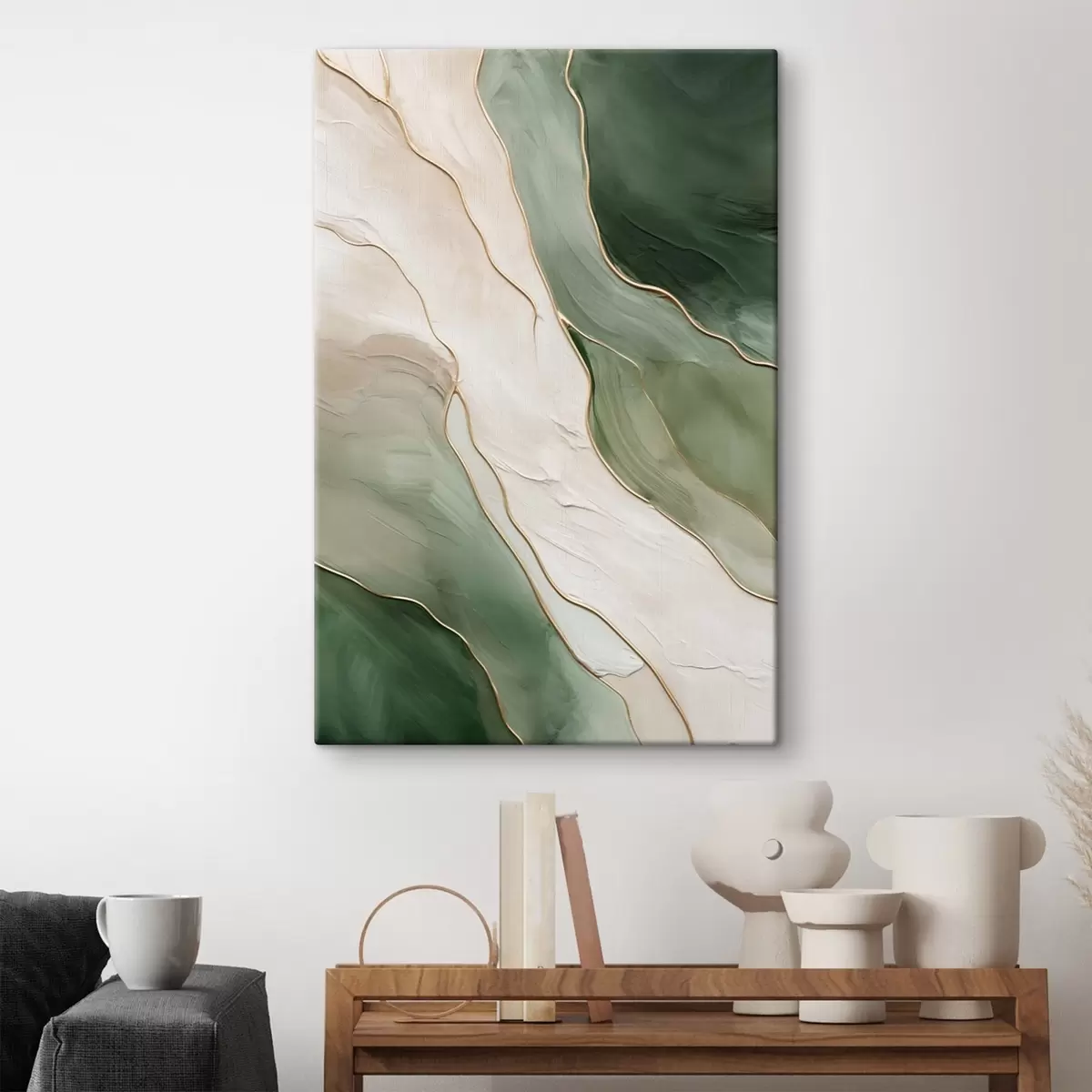 Paveikslas Smaragdo abstraktus piešinys su plonomis geltonomis linijomis Nr s45888