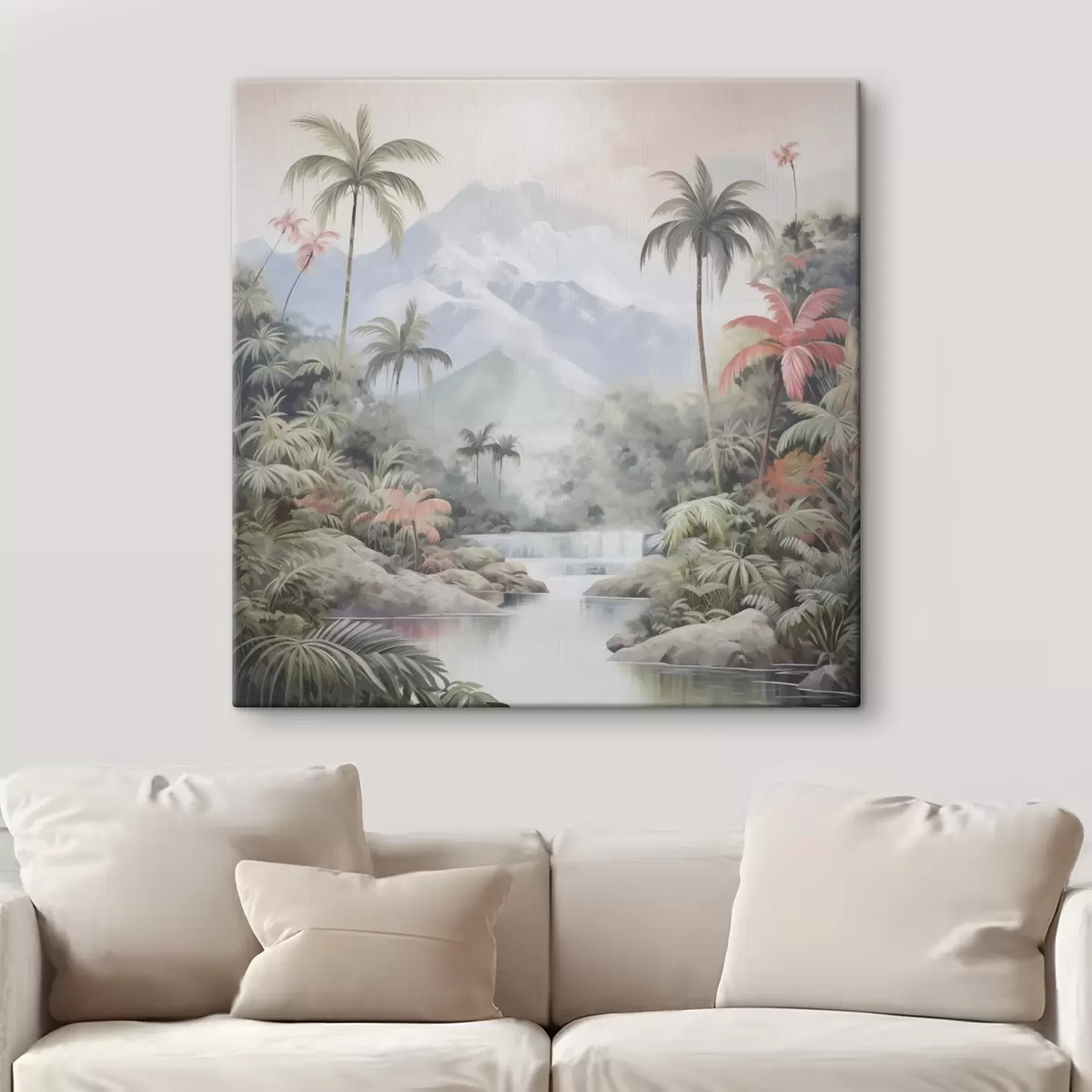 Paveikslas Upių tropiniame miške priešais kalnus Nr s45913