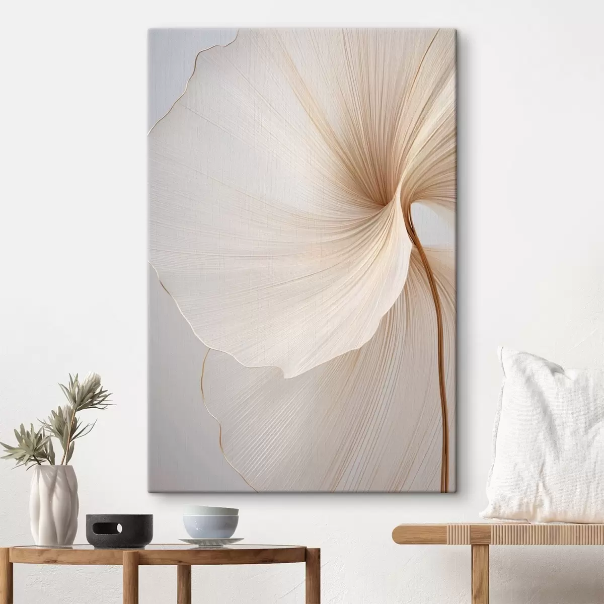 Paveikslas Abstrakčios gėlės su plonais, subtiliais žiedlapiais, balto ir smėlio atspalvių Nr s45922