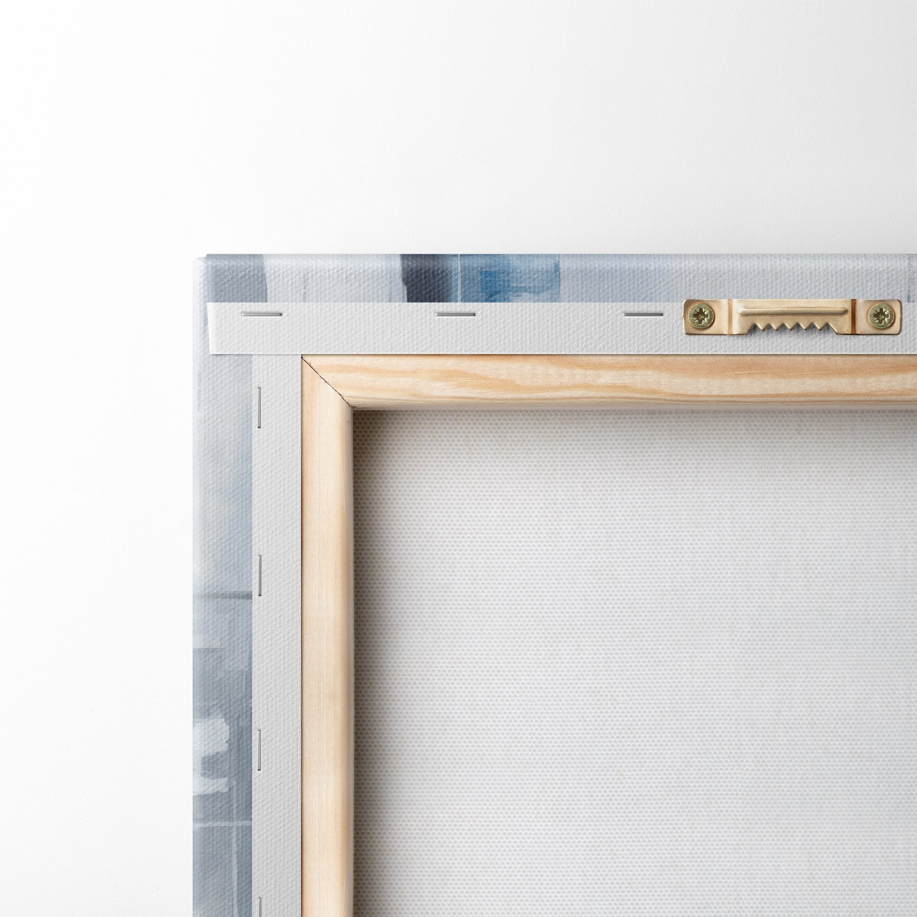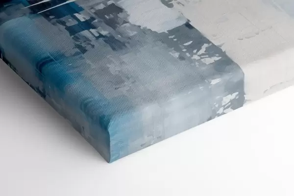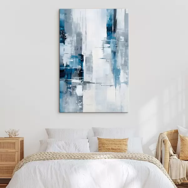 Paveikslas Abstraktaus tapybos imitacija mėlyna, pilka ir balta spalvomis, vertikaliomis linijomis ir geometrinėmis formomis Nr s45926