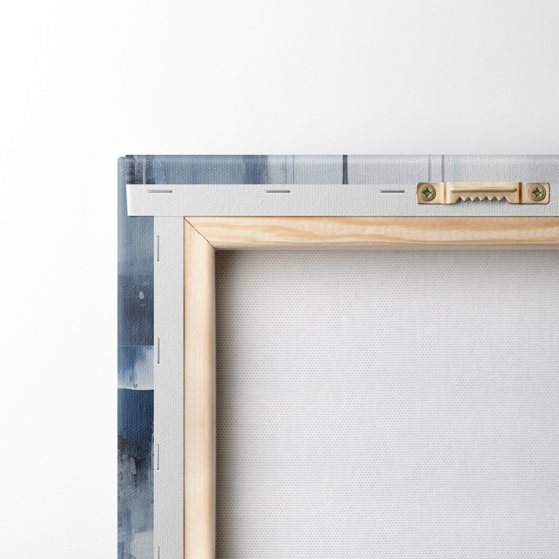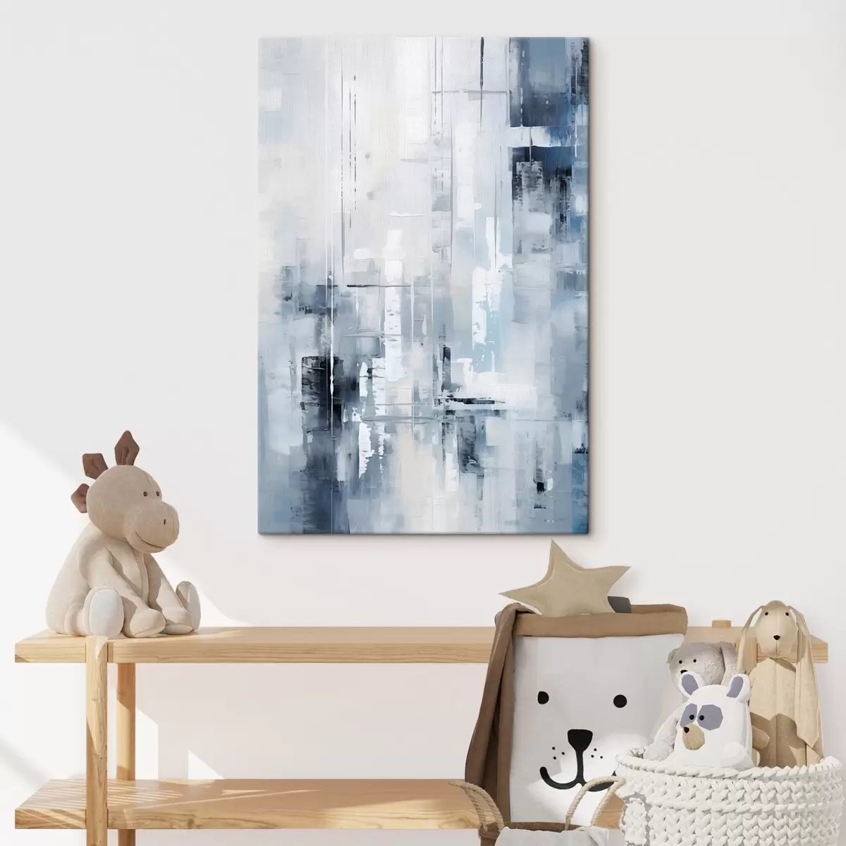 Paveikslas Abstraktaus tapybos imitacija mėlyna, pilka ir balta spalvomis, vertikaliomis linijomis ir geometrinėmis formomis Nr s45927