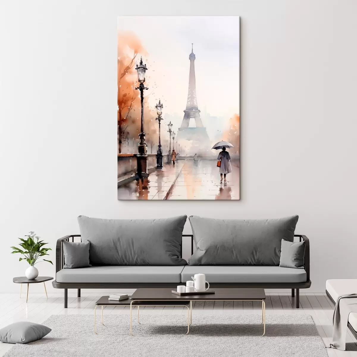 Paveikslas Lietingas diena Paryžiuje su Eifelio bokštu fone ir senoviniais gatvių žibintais Nr s45930