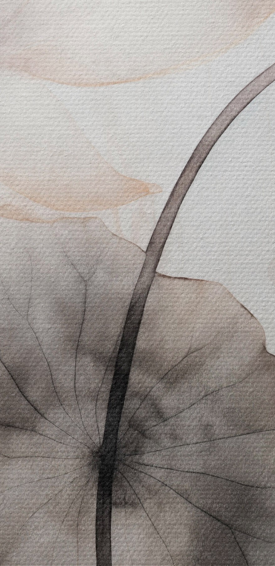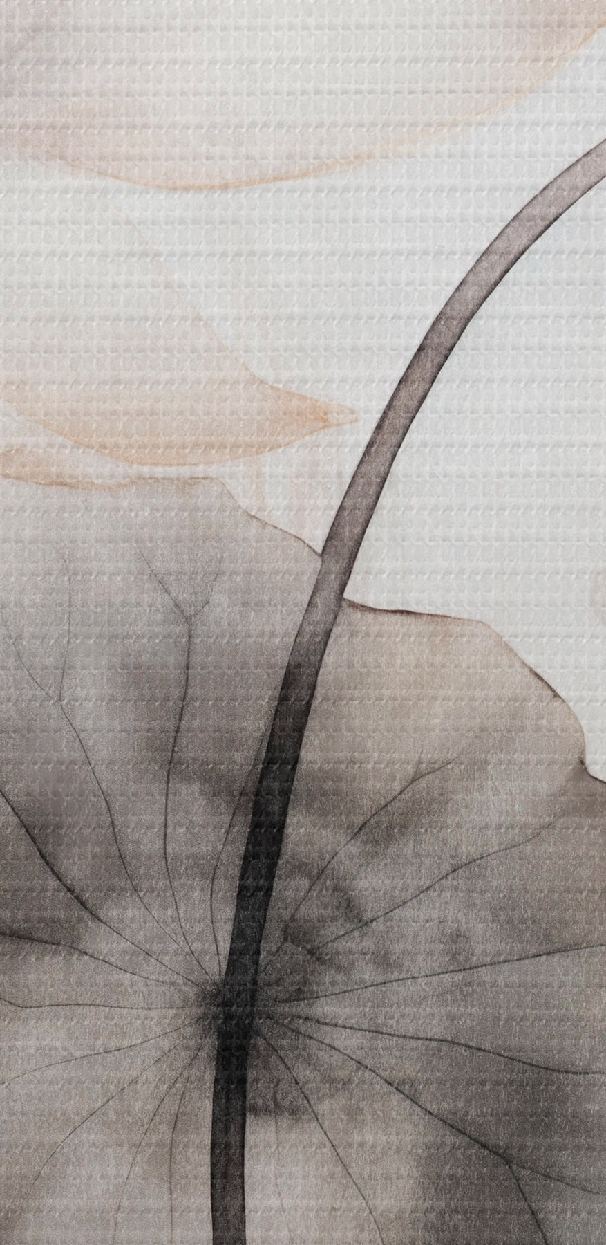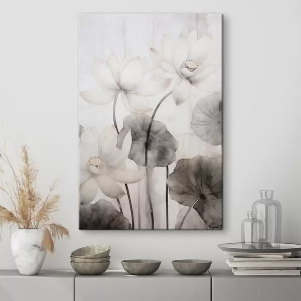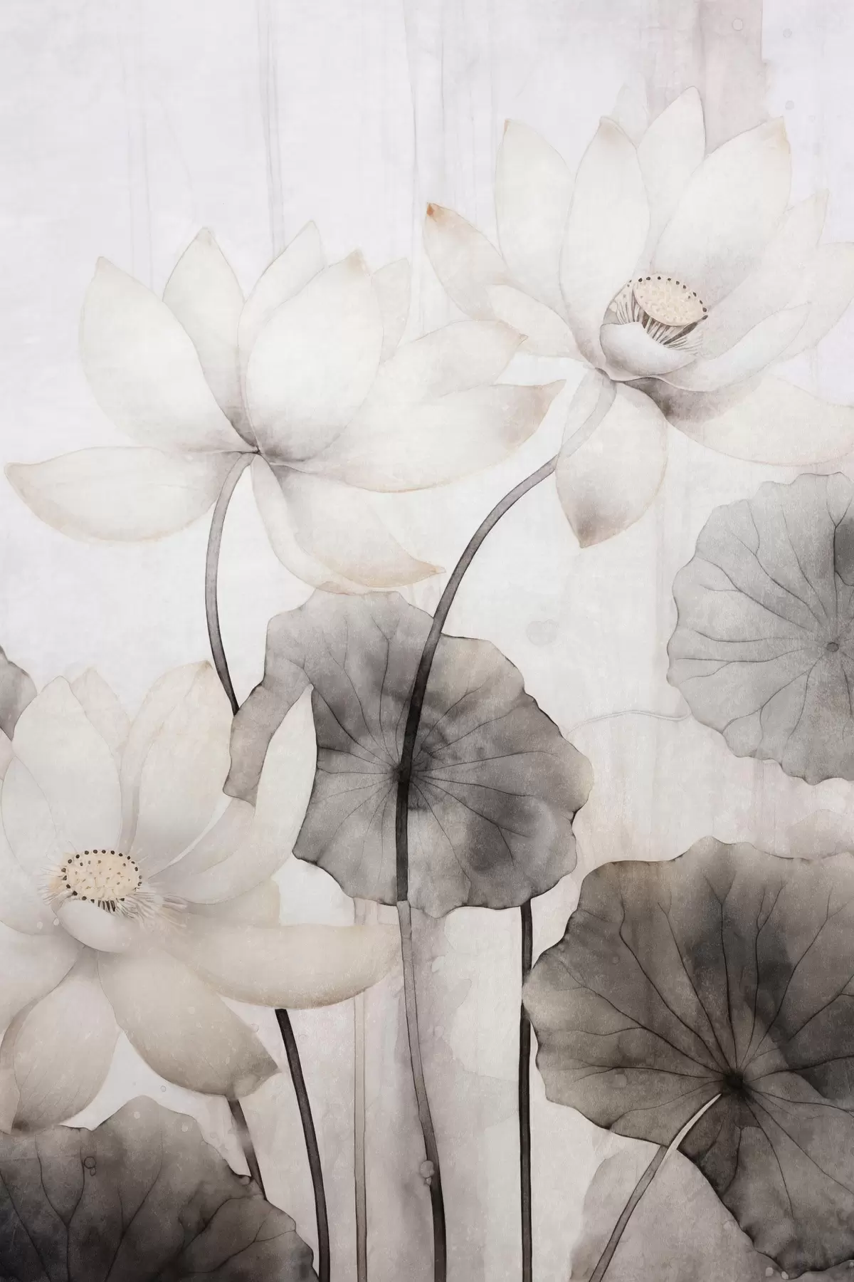 Paveikslas Balta tekstūruota lotoso gėlė su tamsiais lapais, šviesus fonas, minimalistinis dizainas Nr s45937