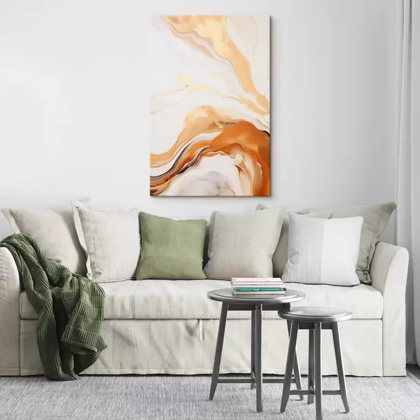 Paveikslas Abstraktaus tapybos imitacija su sklandžiomis formomis balto, oranžinio ir rudo atspalvių, minimalistinė Nr s45938