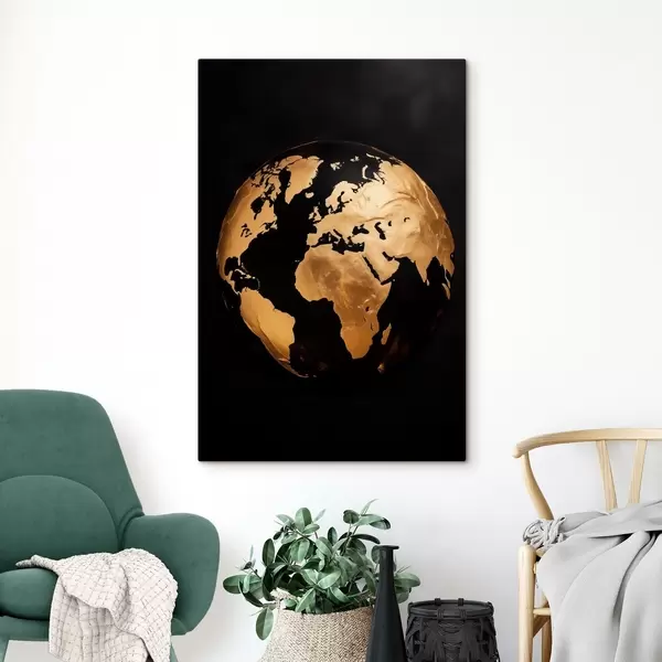 Paveikslas Geltonos tekstūros abstraktus žemės gaublys, planeta juodame fone, modernus minimalistinis menas Nr s45942