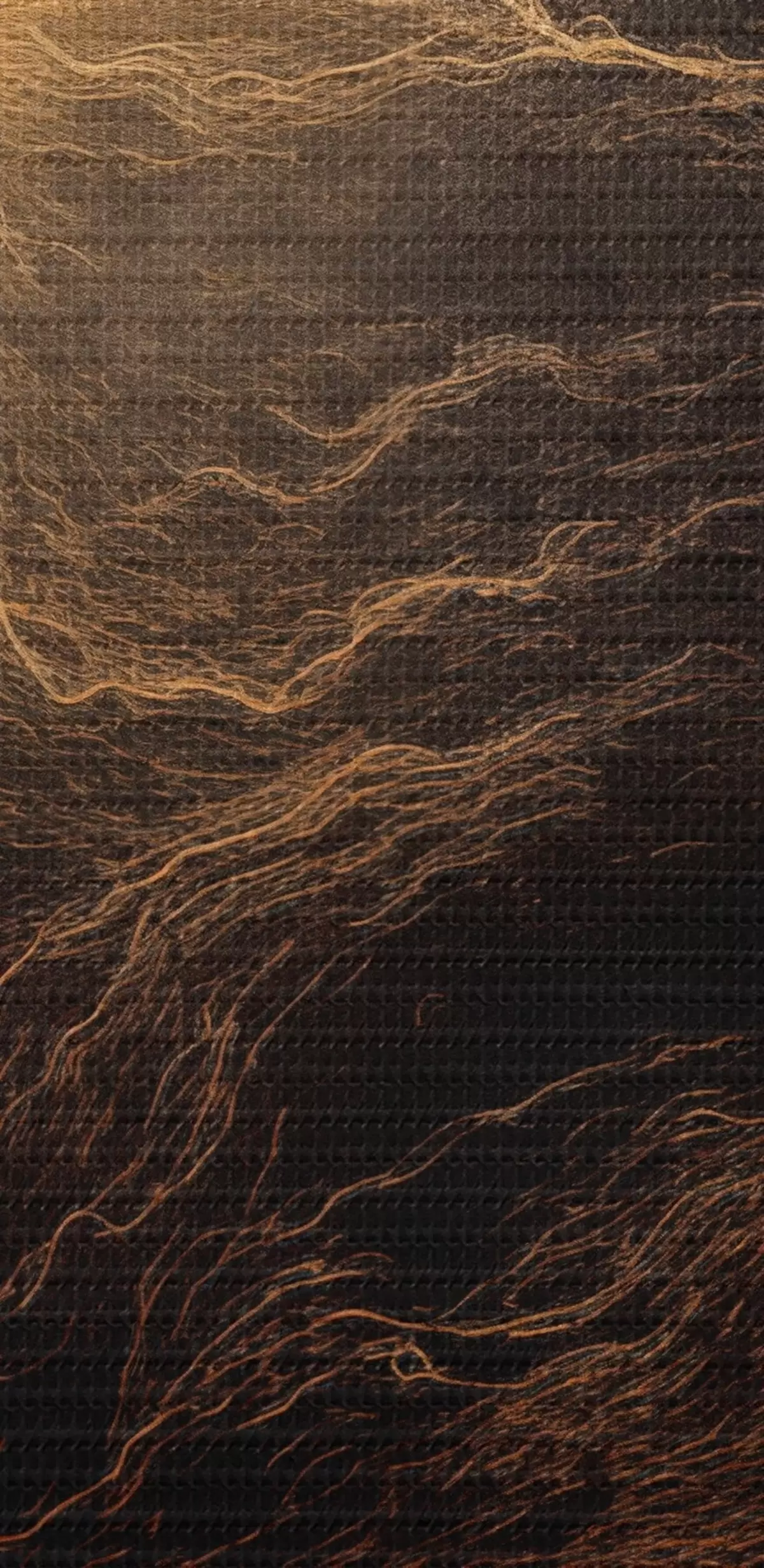 Paveikslas Abstraktaus planetos su oranžinėmis gyslomis juodame kosmoso fone, modernus minimalistinis menas Nr s45943