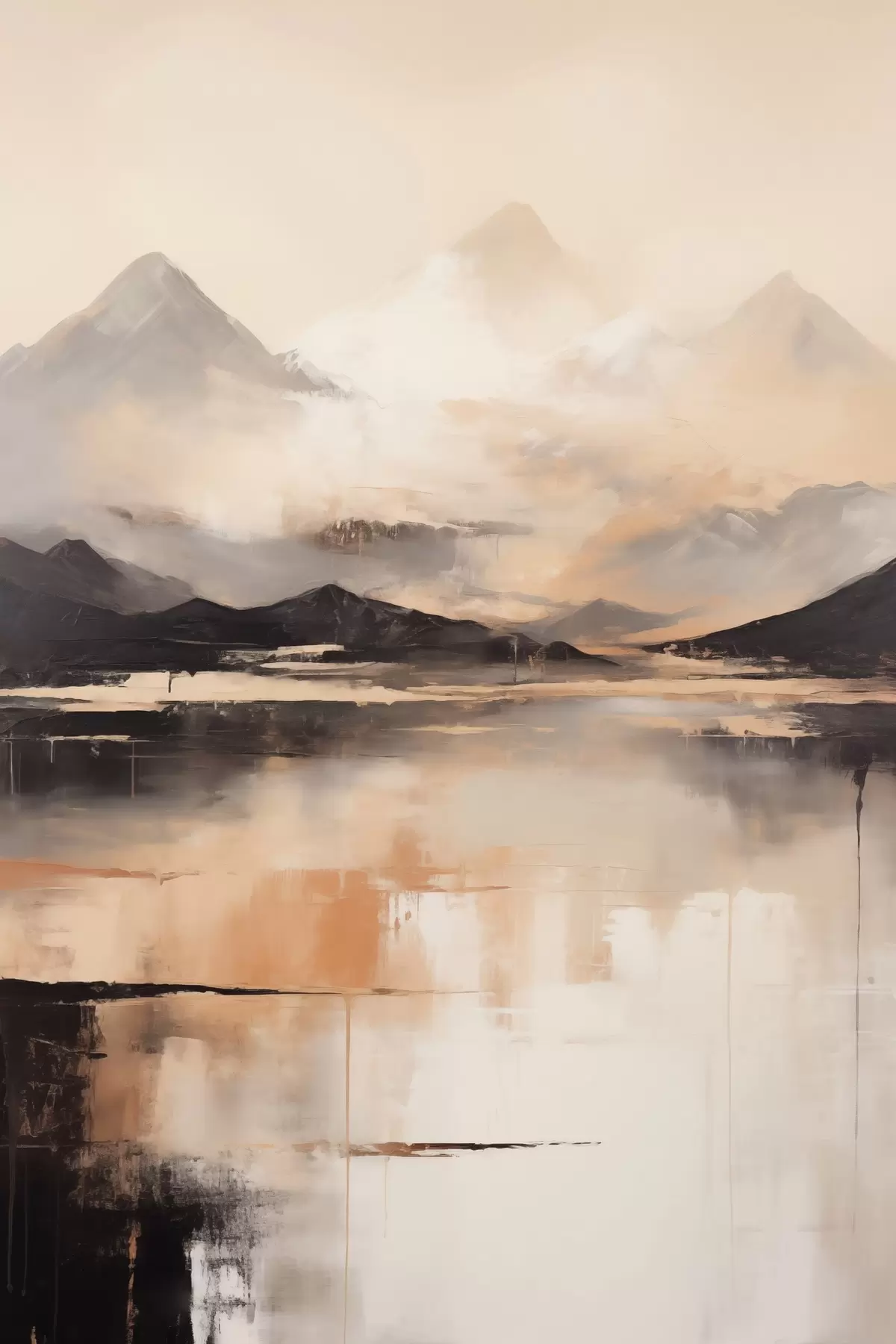 Paveikslas Peizažo tekstūruotas paveikslas, imituojantis kalnus ir ežerą Nr s45950