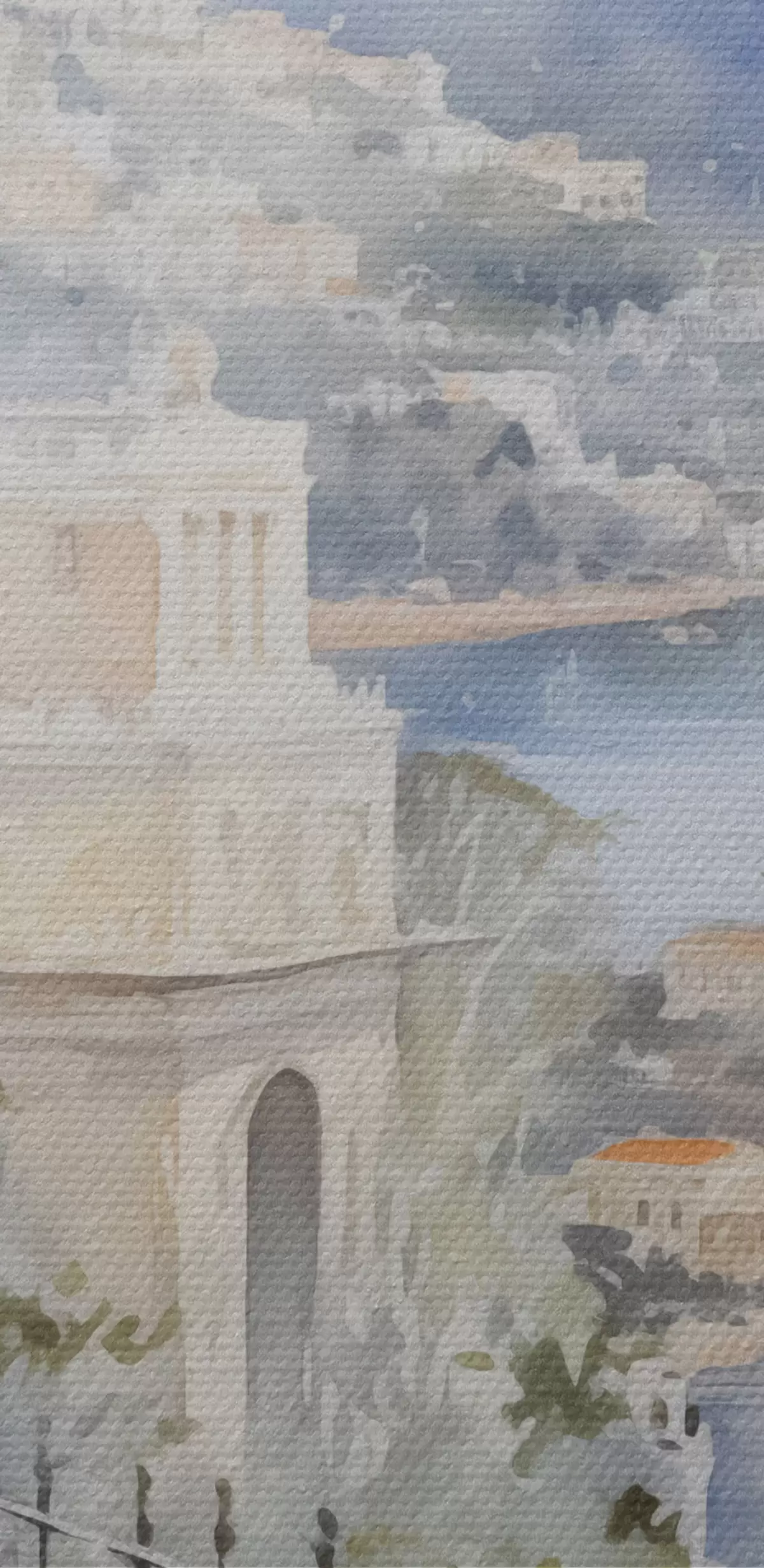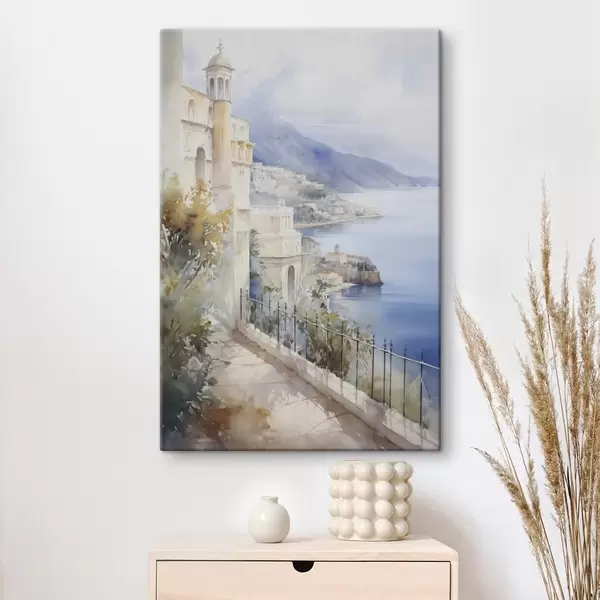 Paveikslas Įlanka netoli miesto, akvarelės imitacija Nr s45979