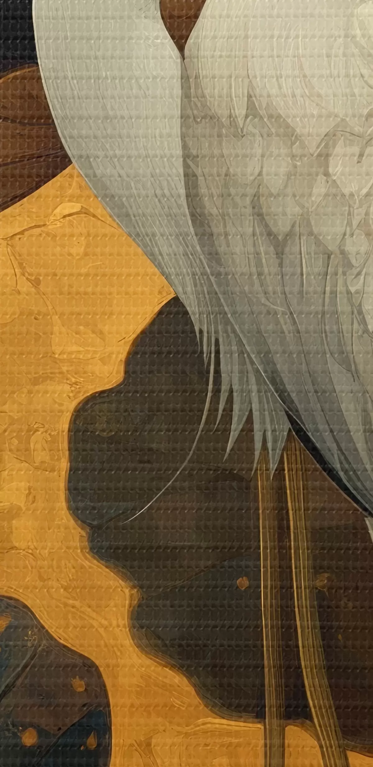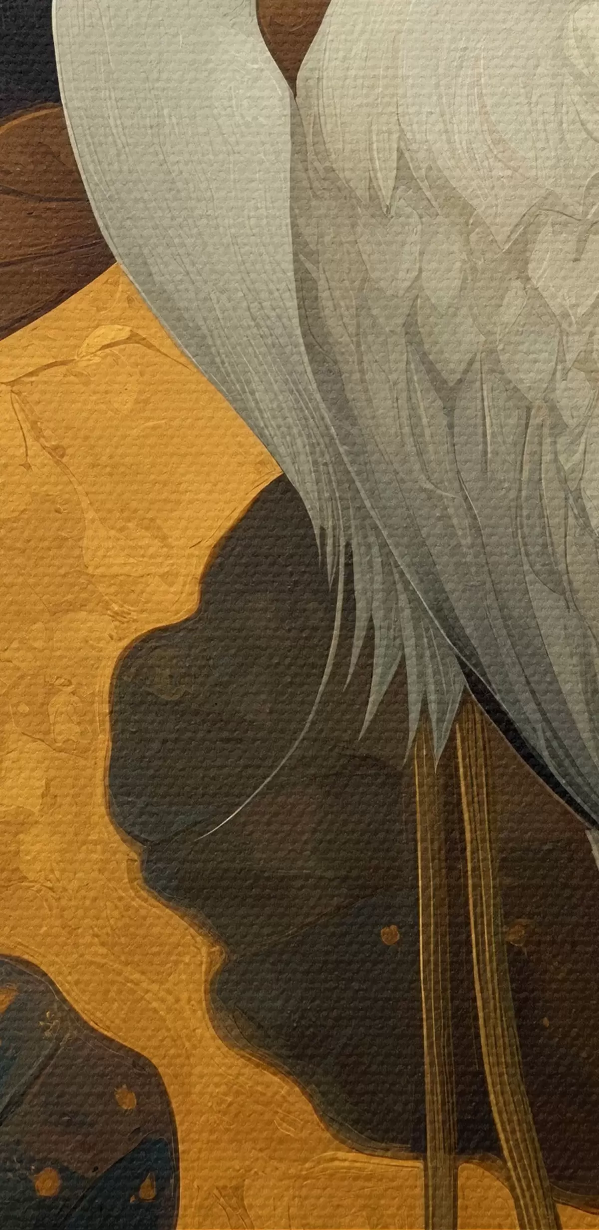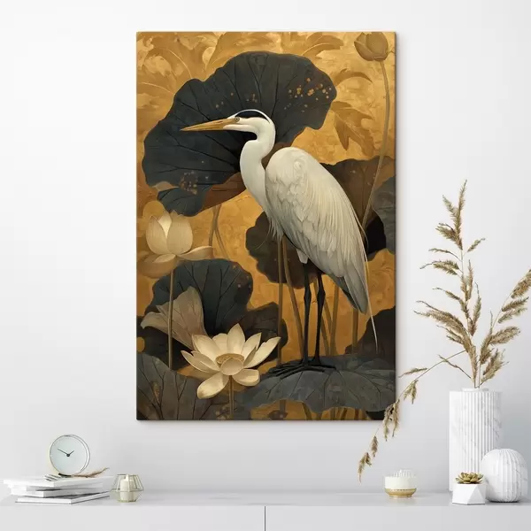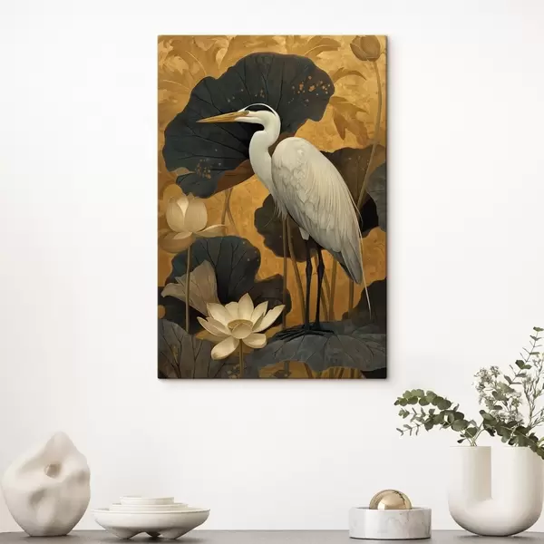 Paveikslas Gervė tarp lotoso žiedų šiltame fone Nr s46148