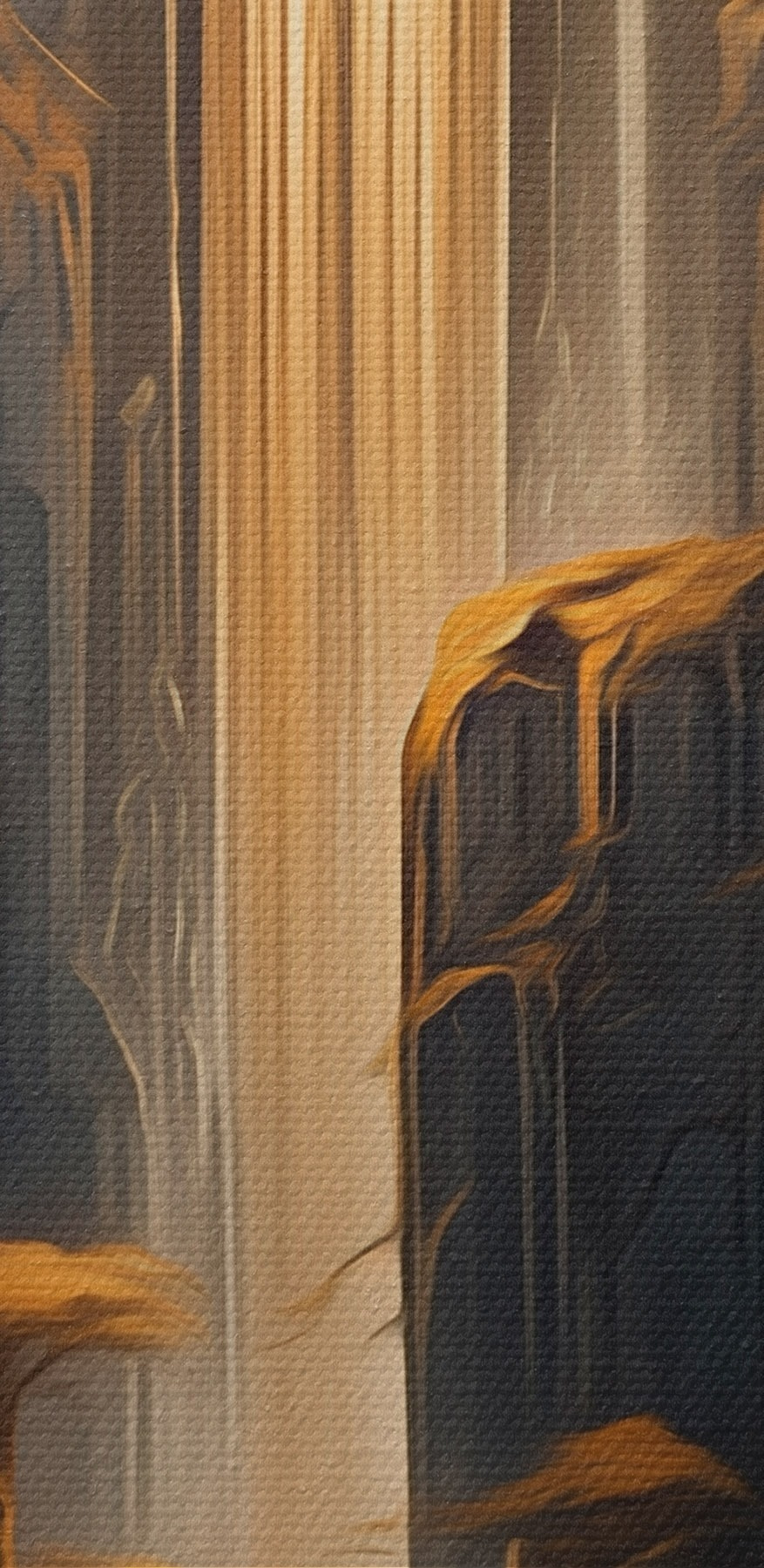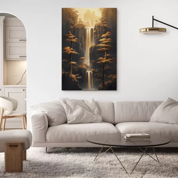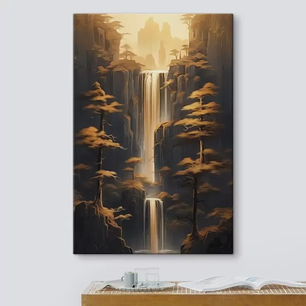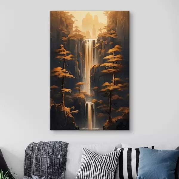 Paveikslas Aukštos uolos su kriokliu ir pušimis vakaro šviesoje Nr s46151