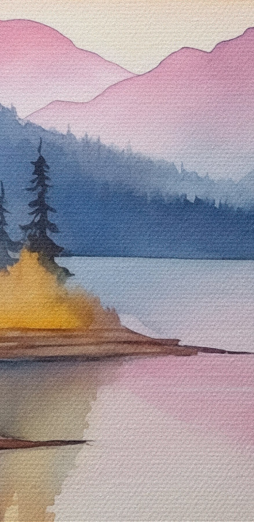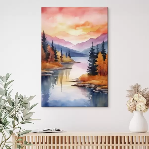 Paveikslas Rudens peizažas prie ežero su šviesiu dangumi Nr s46155