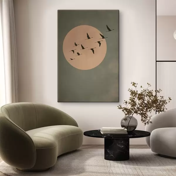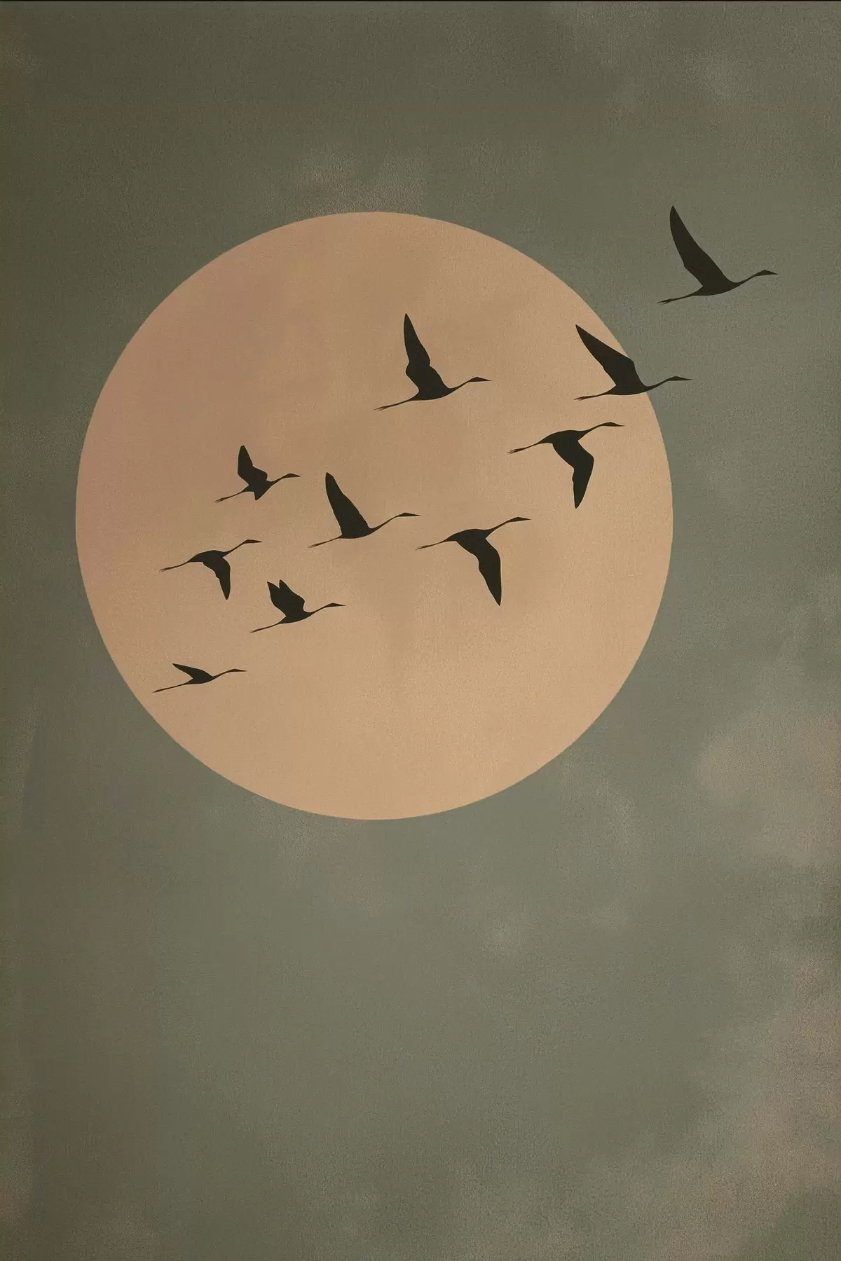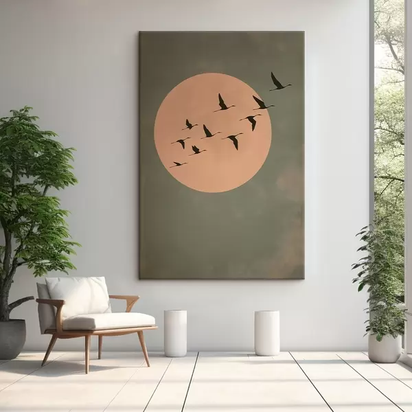 Paveikslas Paukščių pulkas, skraidantis prieš didelį šiltą mėnulį Nr s46162