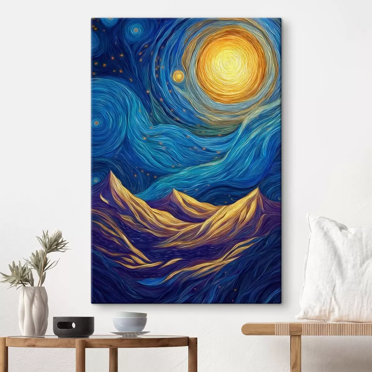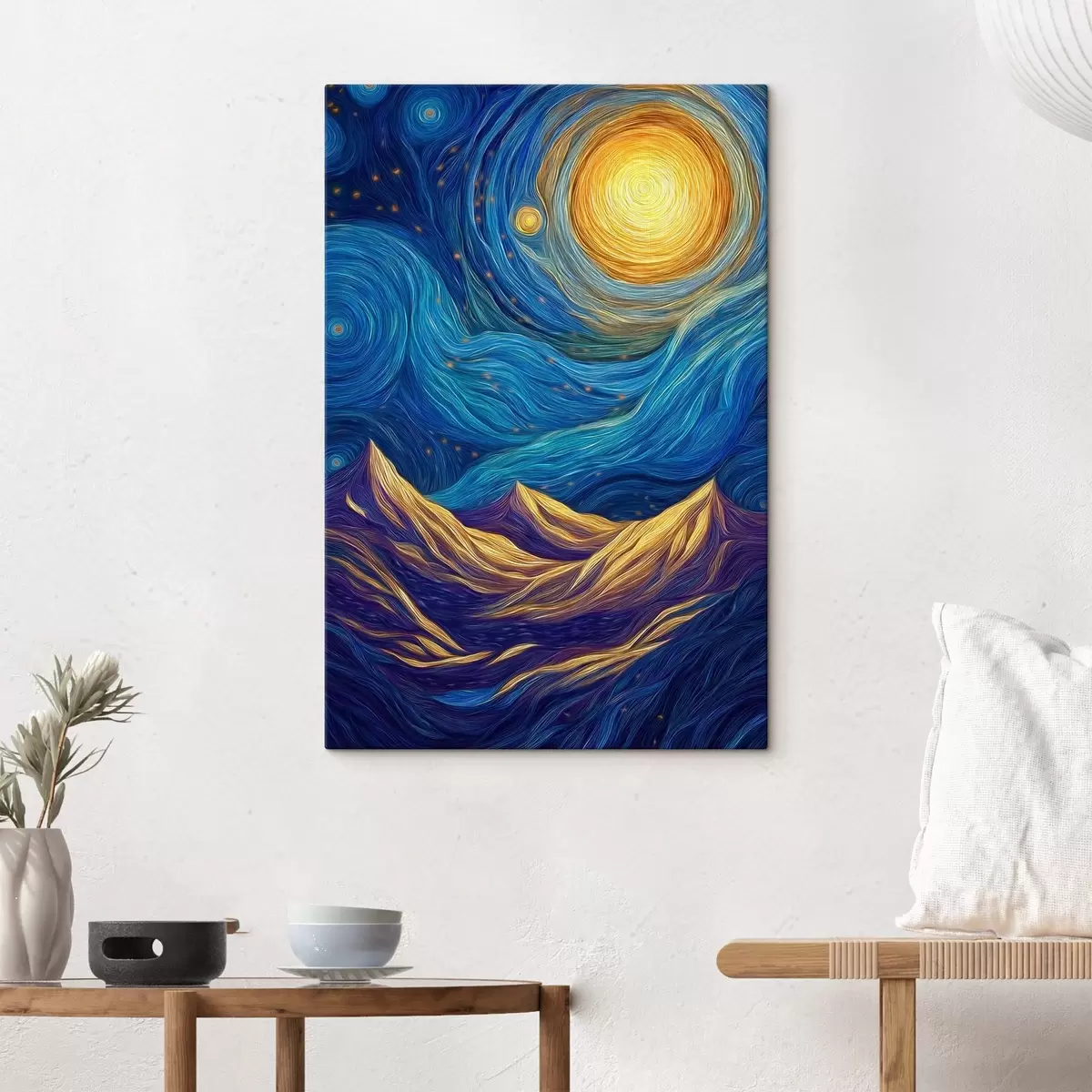Paveikslas Ryškus žvaigždėtas dangus virš kalnų viršūnių Nr s46168