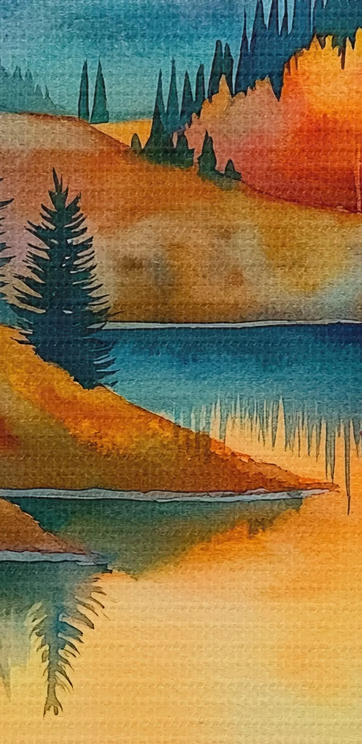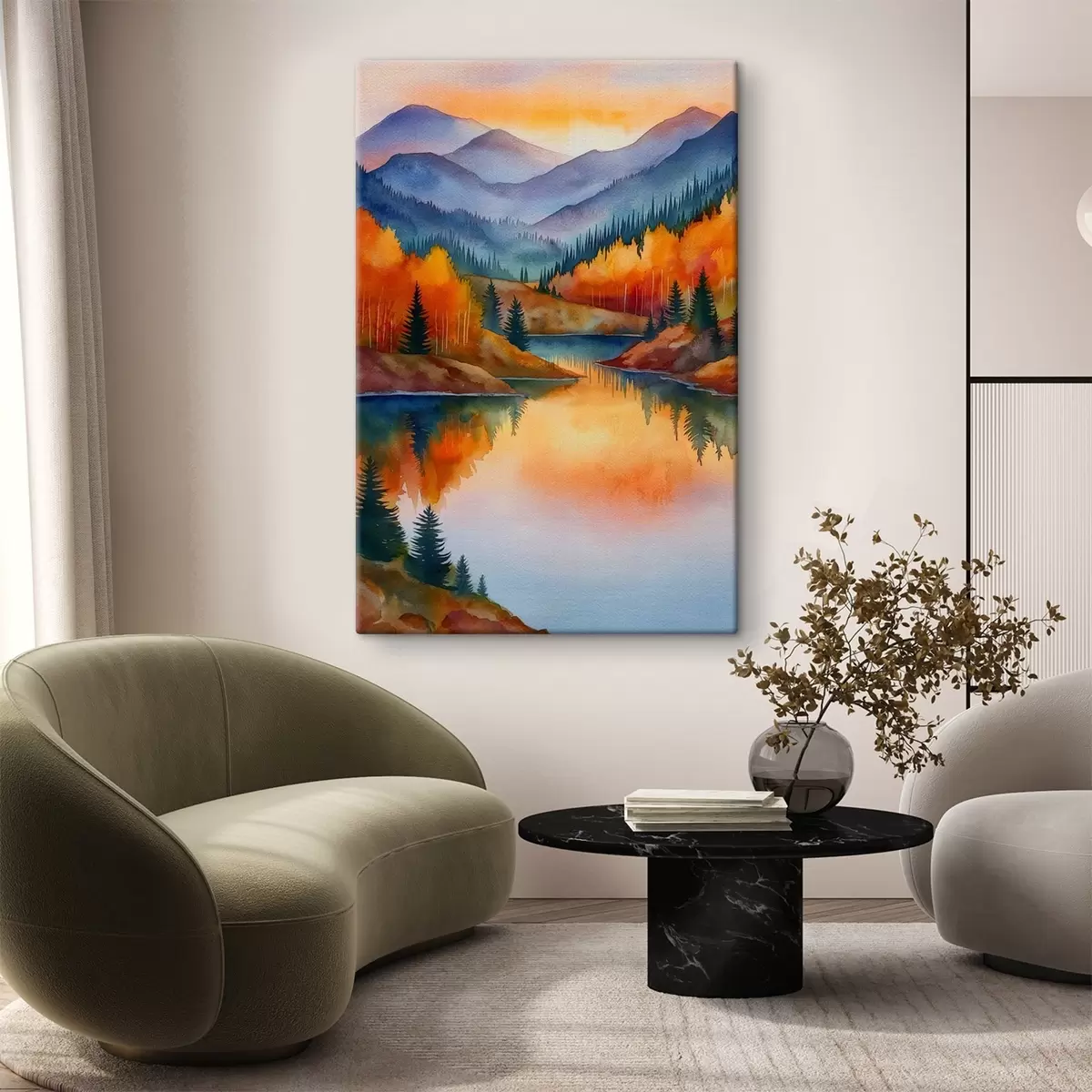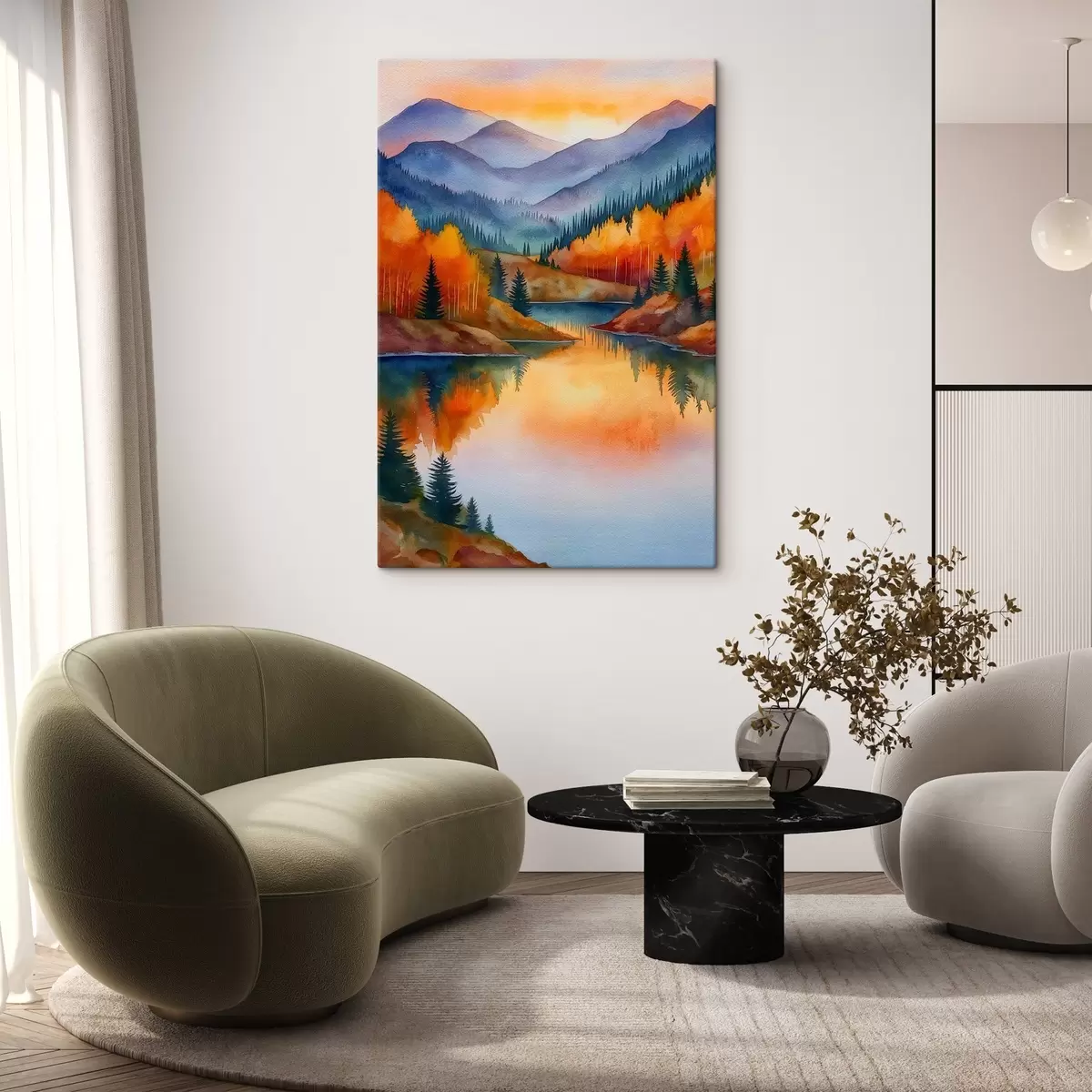 Paveikslas Rudens peizažas su kalnais, atsispindinčiais ramioje ežero vandenyje Nr s46174