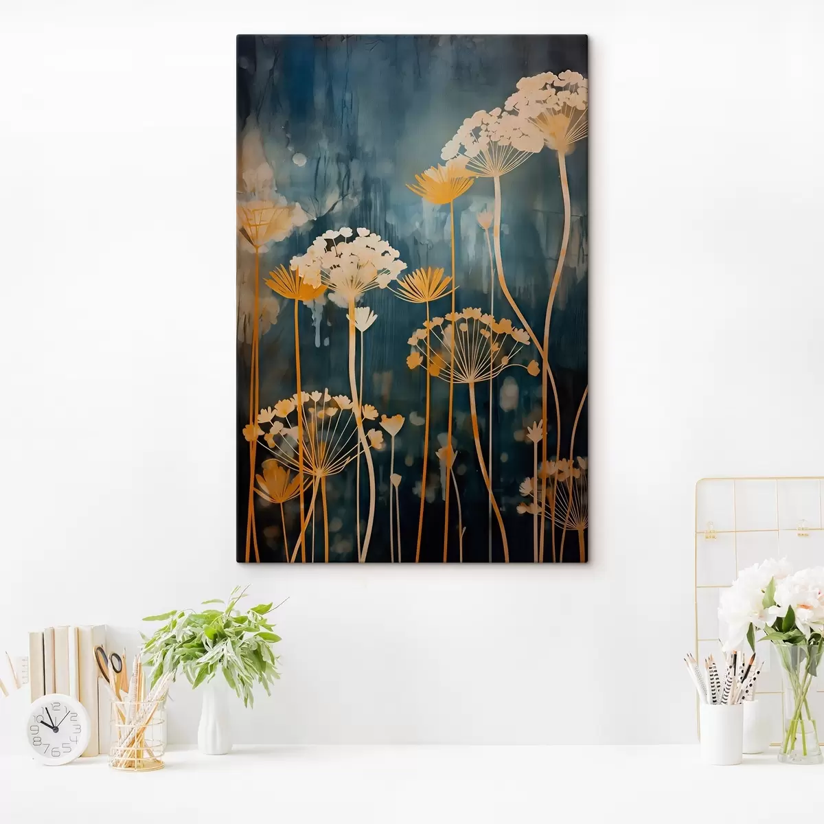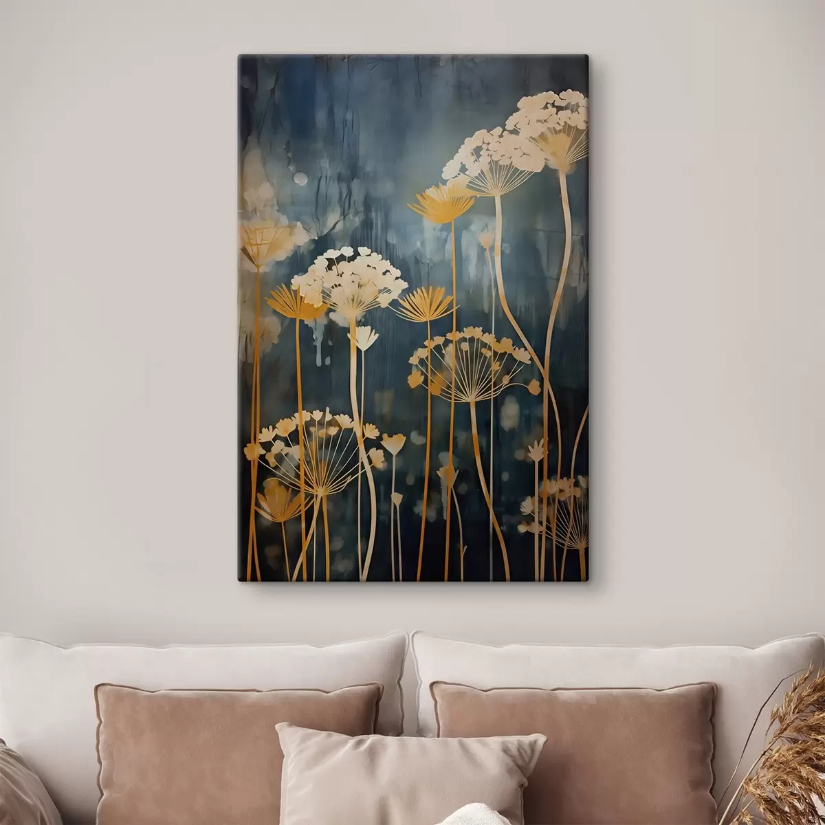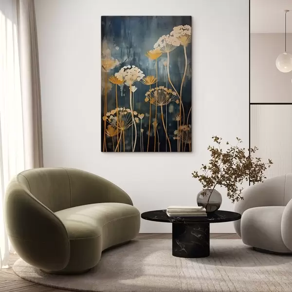 Paveikslas Stilizuoti gėlės su plonais stiebais ant tamsaus fono Nr s46188