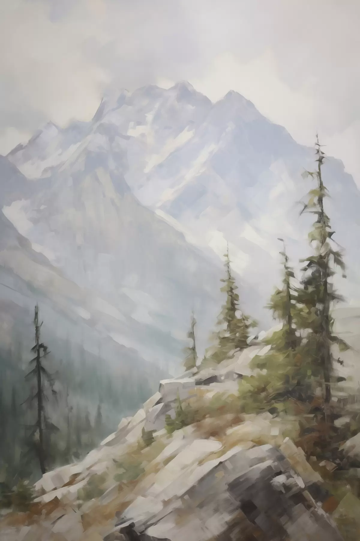 Paveikslas Eglės prieš kalnų foną Nr s46202