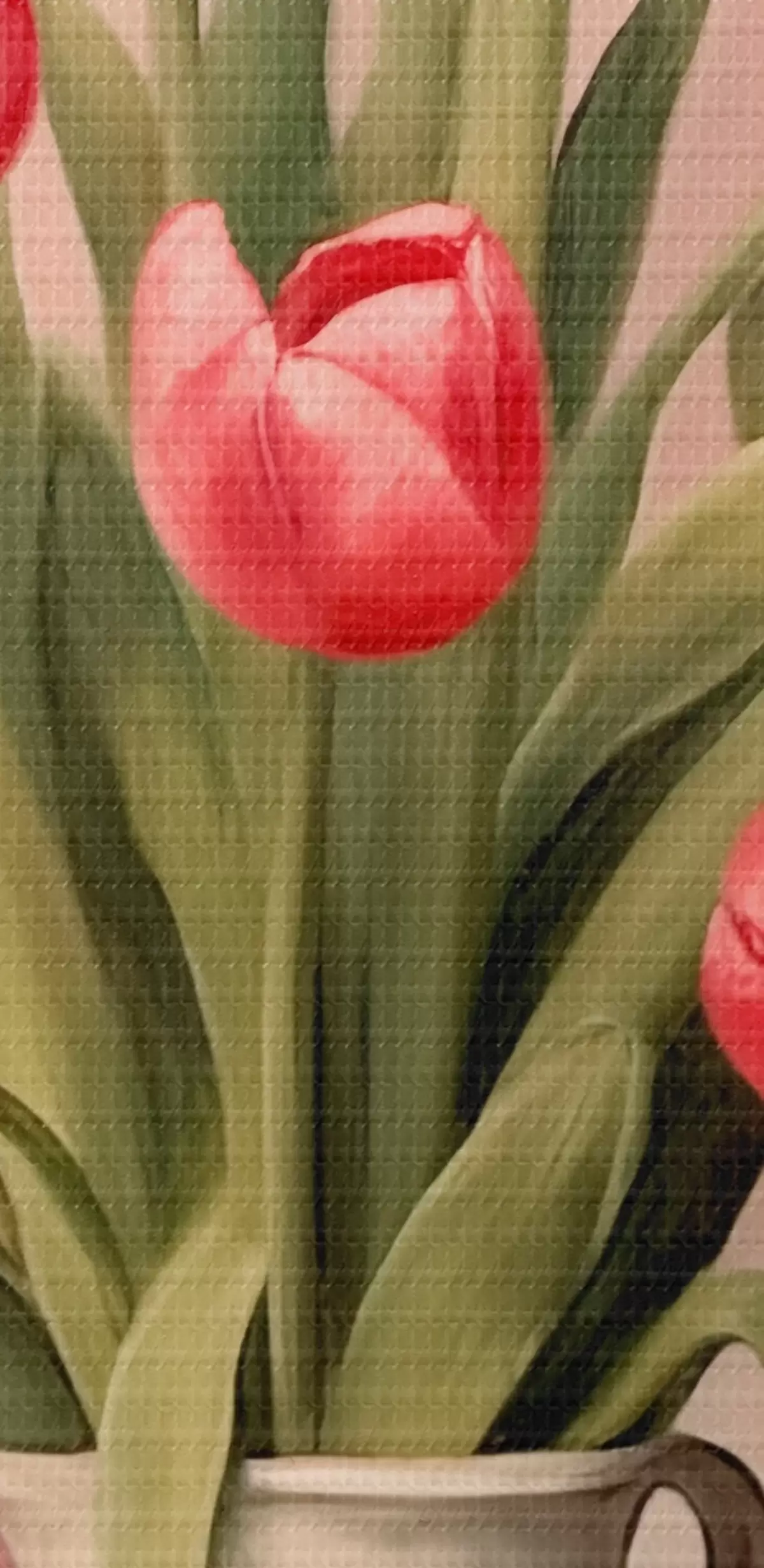 Smulkus siūlų pynimas ant šios drobės primena profesionalių dailininkų drobių paviršių.